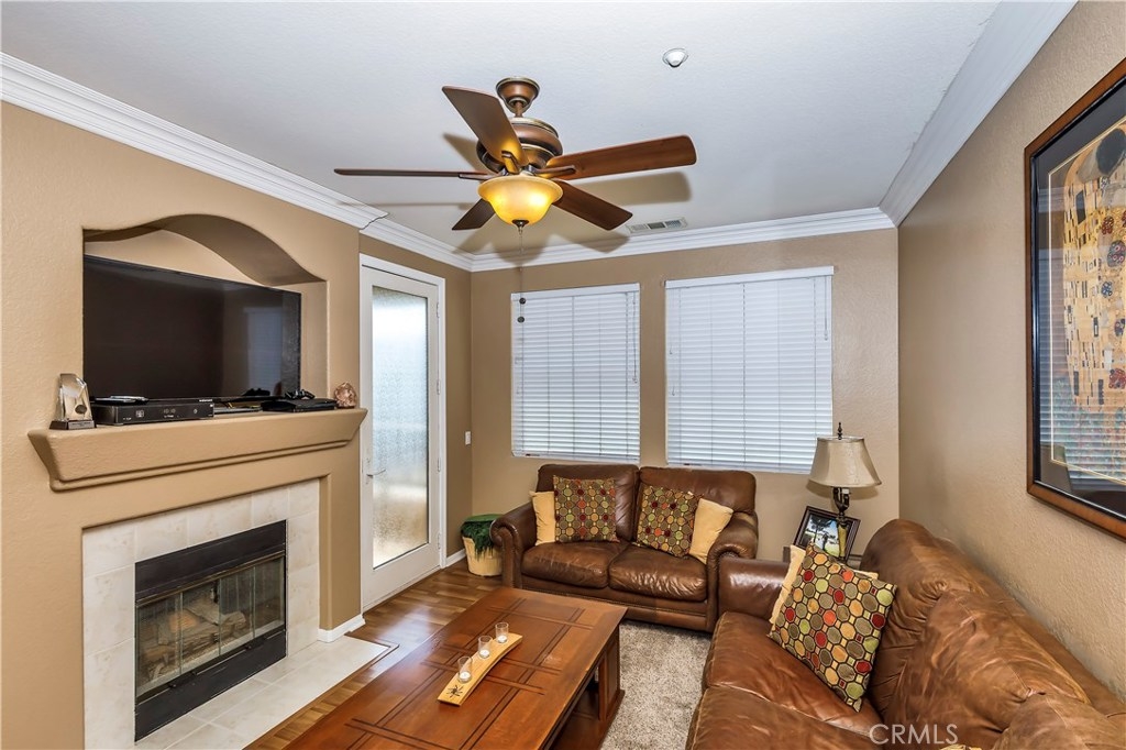 Gorgeous Murrieta Condo within walking distance to Old Town Murrieta! This San Francisco-Style condo offers approximately 1340 square feet, featuring 2 Master bedrooms, a third bedroom currently used as a den (can be easily converted), 2 full bathrooms. Neutral interior two-toned paint, carpet and light fixtures. The living room, with a balcony entrance, offers a cozy fireplace, crown molding & upgraded baseboards, an upgraded ceiling fan, upgraded linoleum wood flooring and loads of light. There is a spacious formal dining area with high ceilings, great for entertaining. The kitchen features upgraded granite countertops, an upgraded mosaic tiled backsplash, newer stainless steel appliances and under-cabinet lighting . There are two master suites, one with a large walk-in closet, each offering a full bathroom with dual sinks. Upgraded mirror closet doors throughout. Large two car attached garage. Enjoy the community pool in the gated community of Amberwalk. This condo is a must see!