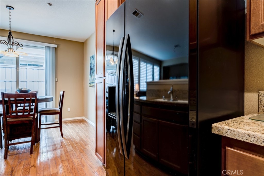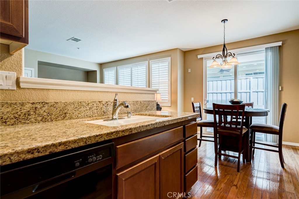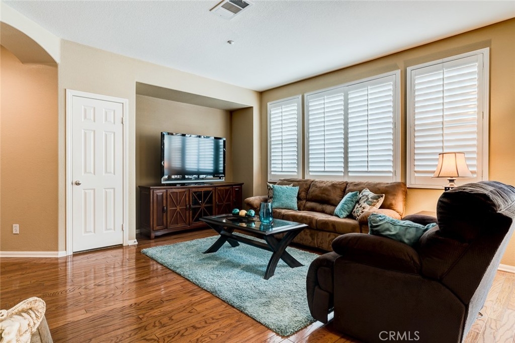 Welcome to this beautiful 3 bedroom, 2.5 bath Murrieta condo located in the highly desirable gated community of Amberwalk. Upon entering this move in ready home, you will immediately notice the open concept living area, hard wood floors, white wood shutters, and warm neutral paint scheme that encompasses the entire main level. The living area also includes a gas fireplace and nook perfect for housing your flat screen tv. On the main level you will also find a half bath with pedestal sink, dining area, and kitchen with granite countertops and stylish black appliances. There is a newer dishwasher, microwave, and whirlpool side by side refrigerator that also comes with this home. Upstairs to the primary bedroom which is filled with natural light, a ceiling fan, walk-in closet and ensuite bath with glass tub enclosure. Additionally, there are 2 secondary bedrooms and a full bathroom upstairs. This home has a built- in sprinkler system, newer hot water heater, and 2 single car garages both with direct access to the home. Laundry is located in the garage and the washer and dryer are included. Outside you will find a low maintenance backyard with desert landscape rock, flagstone, and an artificial turf area. Amberwalk is a peaceful community with beautifully manicured landscaping. It is a community with pool, spa, play area, and BBQ grills, perfect for enjoying summer weekends. The location of this property couldn’t be more perfect! It is within close distance to excellent schools, shopping, restaurants, Murrieta police and fire, and the 15 and 215 freeway, come see for yourself all that this home has to offer.