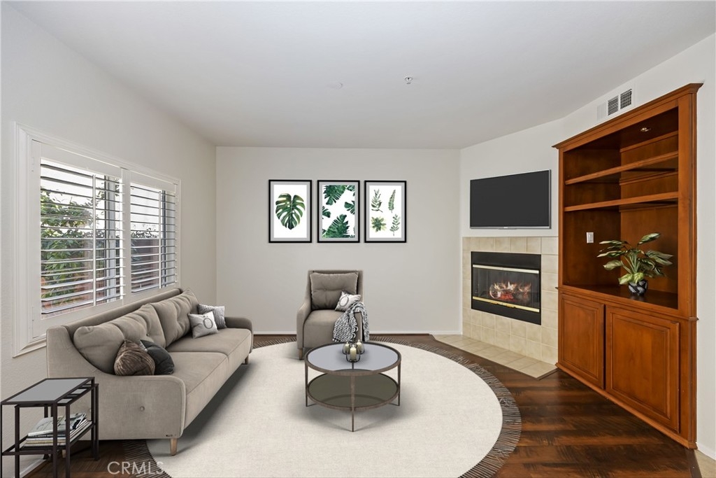 Townhouse located in the Beautiful Community of Arboretum! 3 bedrooms, 2.5 baths and a LOFT. Downstairs bedroom has a custom built-in cabinet with shelves and large closet. Inviting open floor plan with kitchen, living, and dining combination overlooking a large outdoor private patio area with 2 fragrant citrus trees. Kitchen has Corian counters and a nicely-sized pantry closet, tile floors. Living room has wood laminate flooring, auto gas fireplace, and custom built-in cabinet and shelves. Dining area also has custom built-ins to store all of your holiday dishes and tableware. Additionally, this property features a separate laundry room with a window and plenty of storage, including rods to hang clothes - includes full size washer & dryer. Entire home has been freshly painted, has brand-new stylish carpeting, and is in move-in condition, including wood blinds and shutters on the windows! The 2-car garage has some handy shelving for storage. Townhouse located in quiet area of the beautifully landscaped and gated community, near the clubhouse and the larger of 2 community pools. Close to the freeway, shopping, restaurants, Promenade Mall and schools.