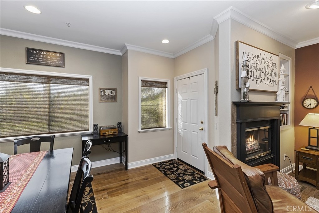 This highly upgraded Arboretum end unit is the home you have been looking for. This turnkey property is located near restaurants, shopping, schools, and is less than two miles away from the I-15 freeway. Situated on the border of Temecula/Murrieta, this beautiful home boasts beautiful pool views, a recently remodeled kitchen, lots of natural light, a hidden play area for the kids (or bonus storage), and plantation shutters throughout. The open floor plan allows for the main living space to be contained on the first level, all bedrooms on the second, and a loft/office space on the third. Enter through the main foyer and you will be greeted by beautiful hardwood floors, a living room with a cozy custom fireplace, designer wood treatments, and crown molding that continues through the rest of the home. Continue and you'll find an open and bright kitchen with eye catching Brazilian countertops, a large island, and upgraded stainless steel appliances complete with custom lighting & wood work. Also on the main level you will find a laundry room, a powder room, and wonderful spacious private courtyard, a refrigerator, and a built in BBQ island great for entertaining. Head upstairs to the sizable master bedroom/bathroom where you'll find a large dual vanity sink, and a separate shower/bath tub. The two upgraded guest bedrooms have cedar lined closets with custom woodwork/shelving. Arboretum is a wonderful family community walking distance to Buchanan Elementary School, Warm Springs Middle School, and Vista Murrieta High School. HOA amenities include 2 resort style pools/spas, multiple parks, and a large clubhouse. Schedule an appointment to come check it out today!