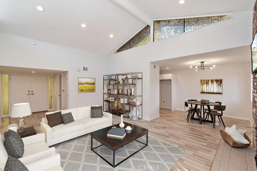 Welcome to this charming, single-story, duplex-style condo. This home boasts of natural light and various upgrades. It features 2 BR + Den(3rd BR if needed) and 1,315 sqft of living space. Enter through the double doors to tasteful NEW laminate flooring through-out the home.. NEW Carpet in the Bedrooms.. New interior paint... Upgraded kitchen with beautiful Quartz countertops with all new stainless-steel appliances and sink and with recessed lighting, new .. Remodeled bathroom with a very nice vanity. This quiet community is lined with gorgeous palm trees and can be enjoyed from the private back patio. Singe-car garage with direct access is included and several HOA amenities such as pool and public bbq. The HOA also covers water/trash utilities and regular landscape maintenance. Don't miss out on this amazing opportunity!