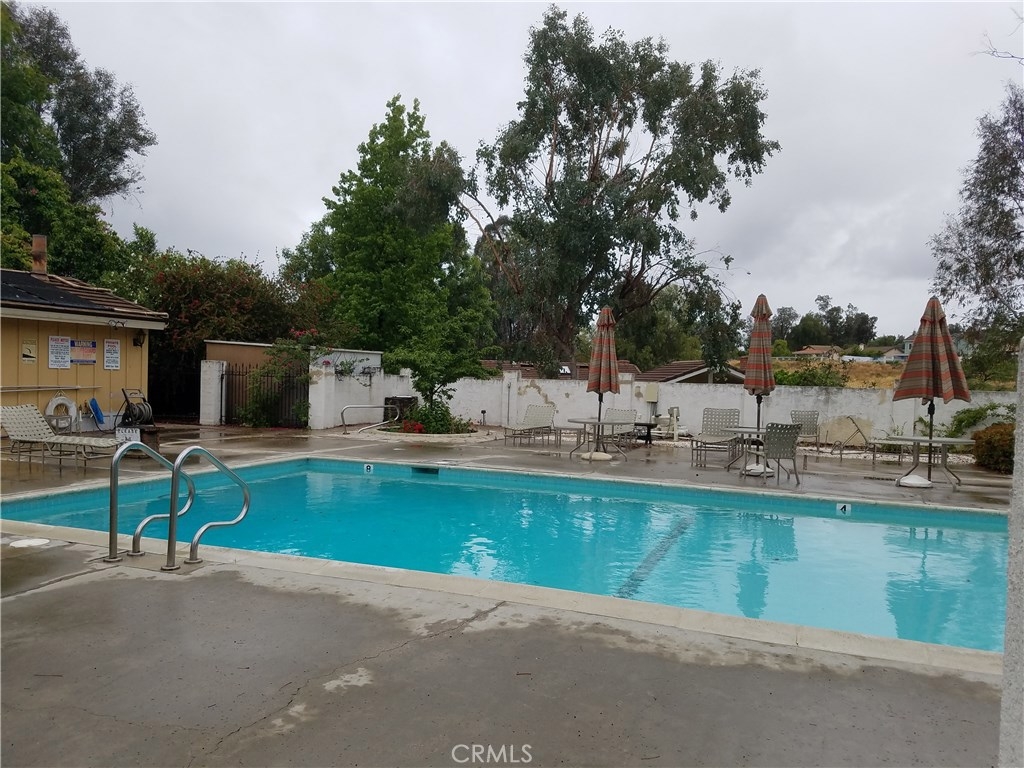 “Single Story attached Condo in small community. 2 Bedoom - 2 Bath plus bonus area off living room. Property has been updated: Kitchen with granite counters and cabinets and bathrooms with tile and granite counters. Tile flooring in entry, living/dining room areas, kitchen and second bedroom. Fireplace in living room. Wood Shutters on windows. Dual-pained windows. Carpet in master Bedroom. Mirrored Closet in in both Bedrooms.Two patio areas with one completely fenced. Refrigerator, washer and dryer included. One car garage attached with Laundry area. Newer Roof, furnace, and air conditioner. Gated Community pool and restrooms. The HOA also covers water, trash and regular landscape maintenance. Great location in Murrieta with good schools and close to shopping and restaurants.“