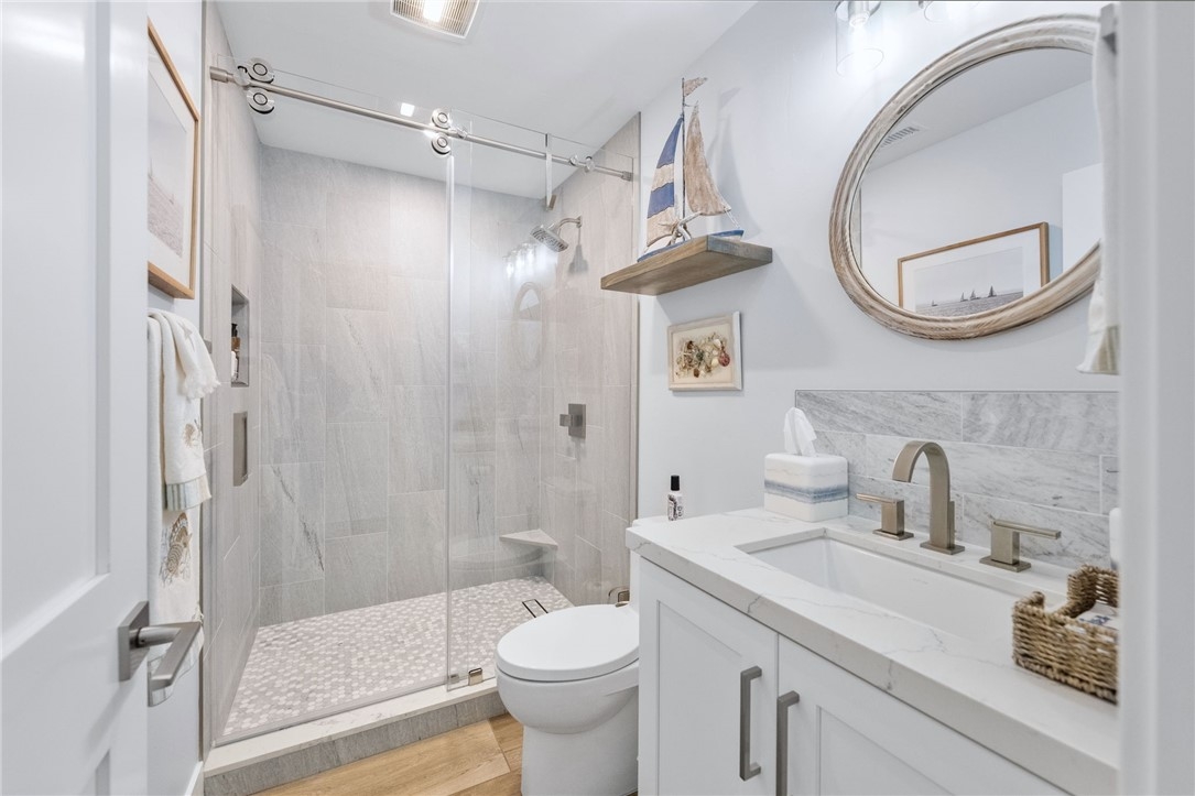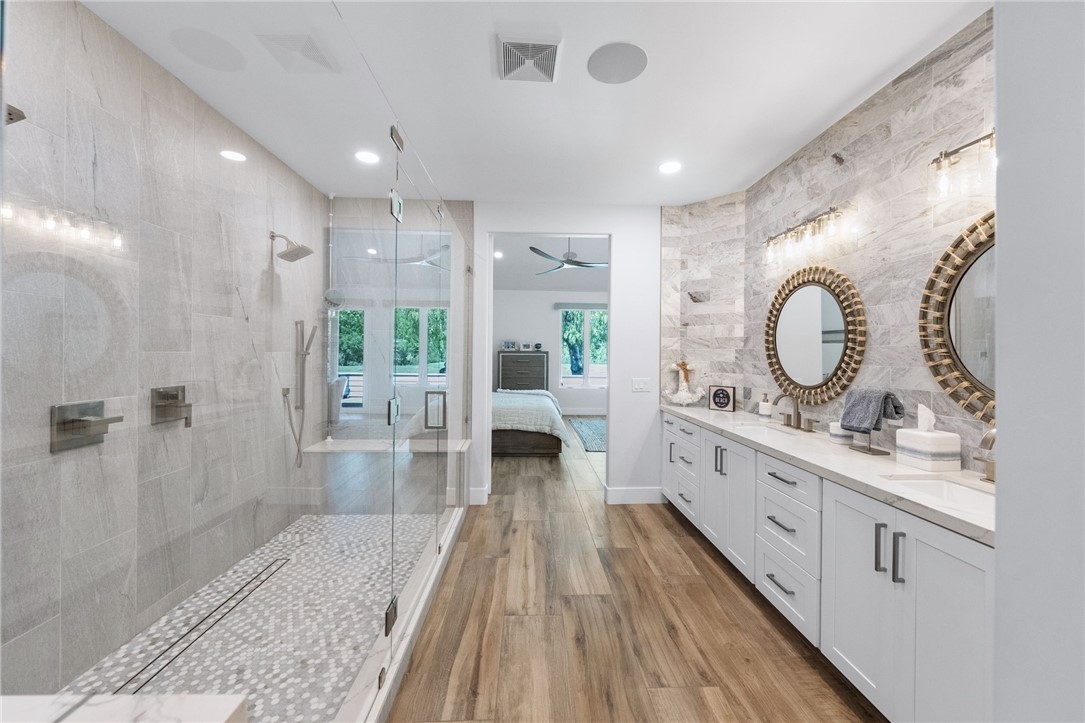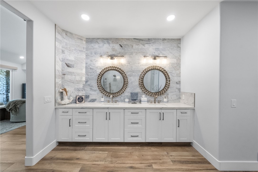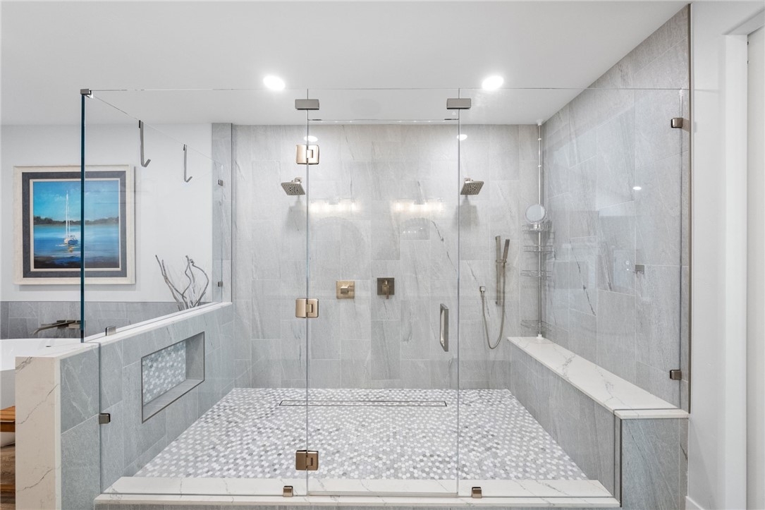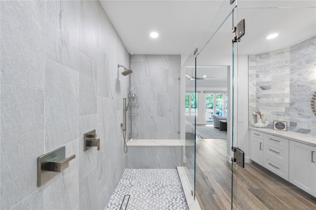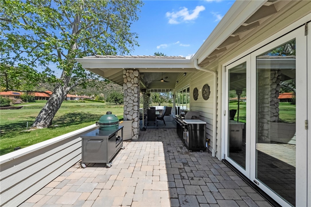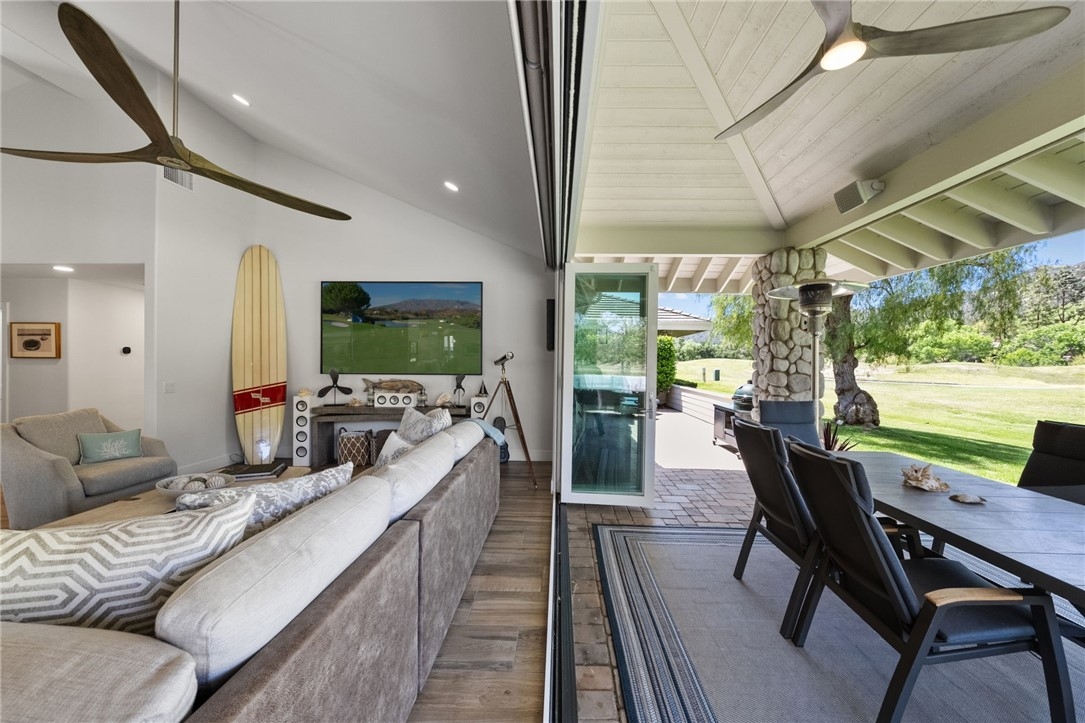 Welcome to luxurious living in the prestigious gated golf course community of Bear Creek. This stunning condo in Bear Creek Villas has been completely reimagined and redesigned from the ground up—offering the perfect blend of modern luxury, comfort, and effortless sophistication. Truly move-in ready, with no expense spared in the transformation. Every inch of this home has been thoughtfully curated, starting with a new, custom floorplan that maximizes space, light, and flow. Reconfigured to create expansive, open-concept living areas ideal for entertaining or relaxed everyday living. From all-new plumbing, windows, interior doors, wall textures, and hardware to a tankless water heater and high-end finishes throughout, this home feels brand new—because it practically is. The show-stopping kitchen is a chef’s dream, featuring sleek quartz countertops, Z Line appliances including a 6-burner gas range with grill and dual ovens, hood, microwave, dishwasher, and a built-in Subzero refrigerator. An indoor teppanyaki grill with bar seating adds flair and function—perfect for hosting unforgettable gatherings. The great room opens through accordion glass doors to a private back patio with unbelievable golf course views, blending indoor-outdoor living. The primary suite is a true retreat with a fireplace, private patio access, and sweeping views. The redesigned primary bath includes a large walk-in shower with dual heads, freestanding soaking tub, dual sinks, linen storage, and an expansive walk-in closet. A spacious secondary bedroom and fully remodeled guest bath ensure comfort for guests or family. The 2-car plus golf cart garage features custom epoxy flooring, and the double-door entry leads into a private courtyard patio—adding to the home's charm and privacy. Step outside to the back patio lined with pavers and new walls, and take in panoramic views of the 9th tee box, 8th green, the winding creek, and surrounding hills—a truly picture-perfect setting. Located in the heart of Bear Creek, a private, gated golf course community with exclusive amenities including tennis, pickleball, bocce ball, gym, pool, and spa. This is a rare opportunity to own a completely turnkey, top-to-bottom remodeled luxury home. Welcome home—where every detail has been elevated to exceptional.