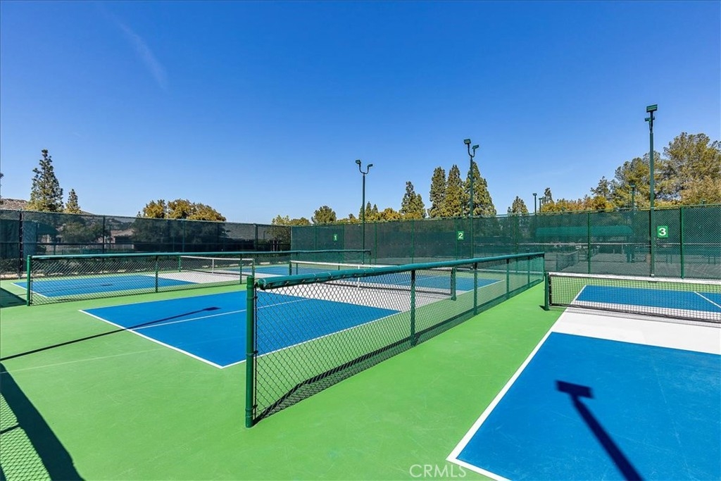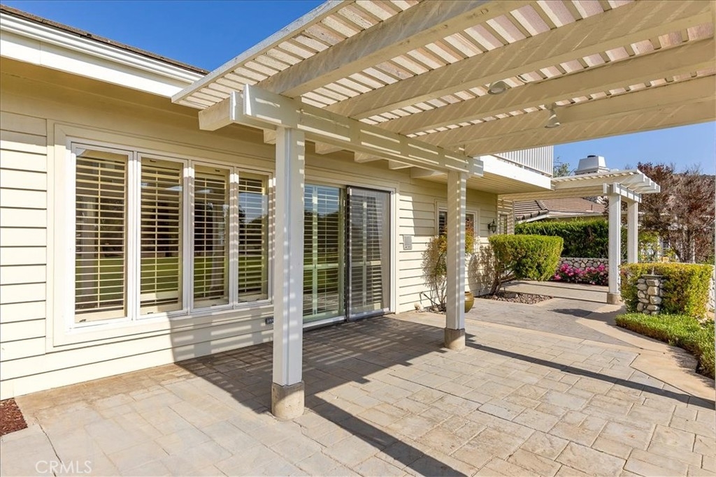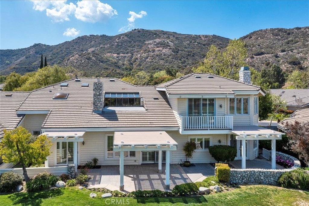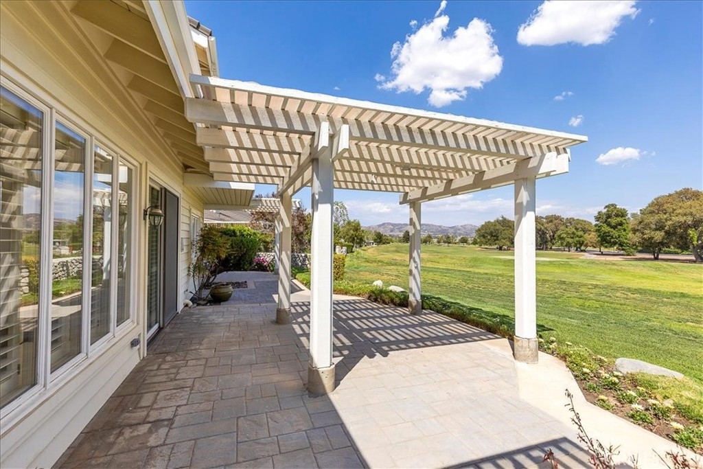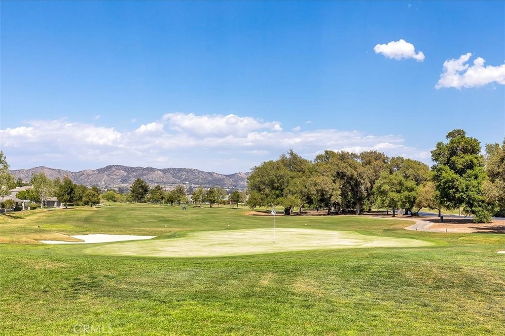 Set below the majestic hills of La-Cresta near the Santa Rosa plateau, this delightful home is conveniently located close to desert, ocean and mountain destinations. Choose to relax and savor the peaceful, serene atmosphere of the neighborhood. Or enjoy the active life style of Bear Creek with tennis, pickle ball, Bocce, work out facilities and swimming pools. It's the perfect residence for golf enthusiasts, located on the 1st fairway of a private Jack Nicklaus golf course. The golf cart garage is plumbed for electric and water, with spacious cabinets for clubs and gear. This is a villa that lives more like a house. Enter through a large flower-filled courtyard, The great room features 20 ft. ceilings, a river rock fireplace, beautiful windows with plantation shutters throughout, The eat-in kitchen that catches the morning sun, has a Subzero refrigerator, Jenn-air cooktop and a walk-in pantry. There is a private master suite on each level, with dual sinks and large cedar walk-in closets. The office has inspiring views and features built-in cabinetry and a drafting table, perfect for working from home or for home-schooling. The other two bedrooms are large with one having an attached full bath. The back patio is adjacent to the golf course with evening breezes and has three distinct areas. Also there's plenty of storage in the garage.
