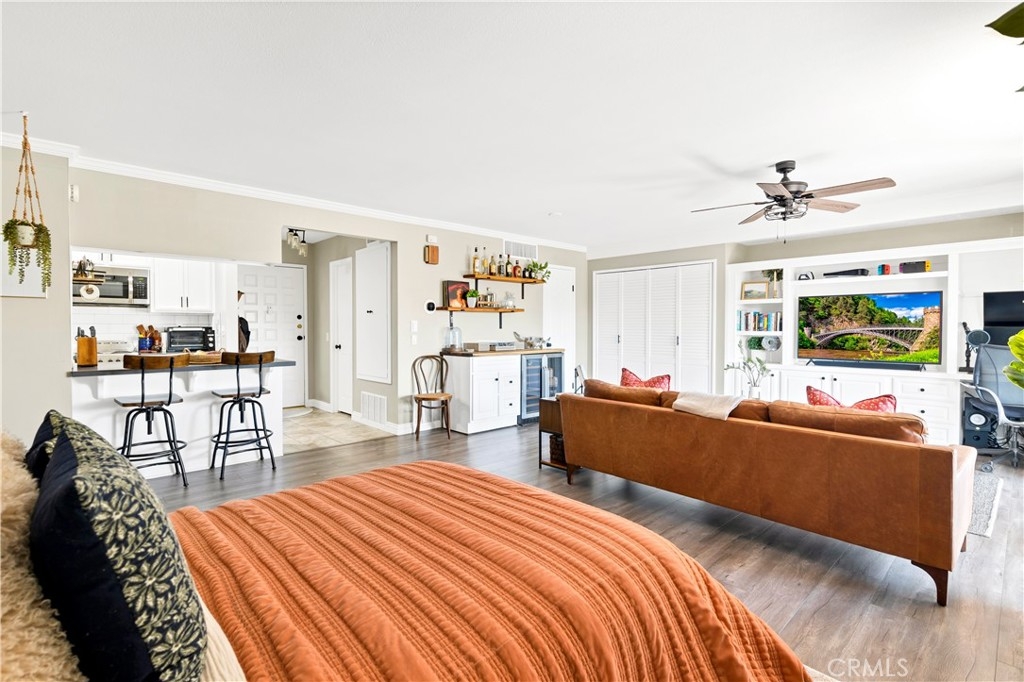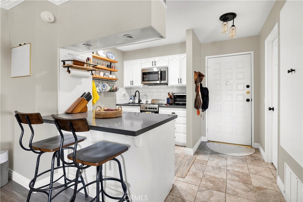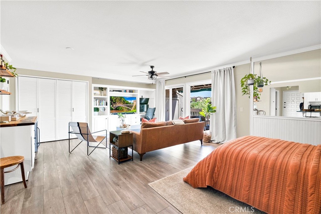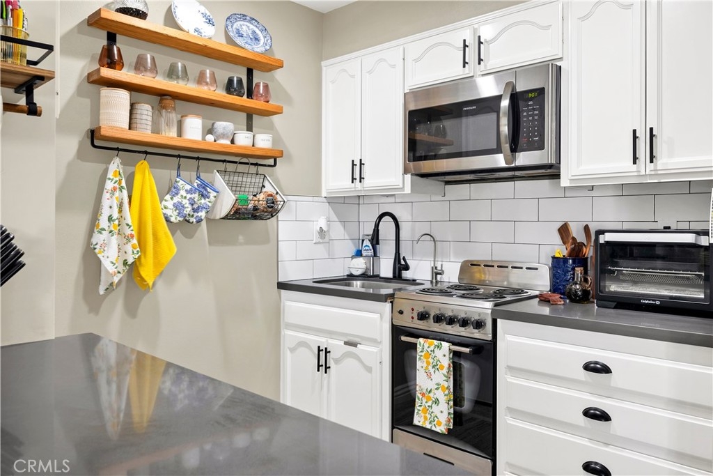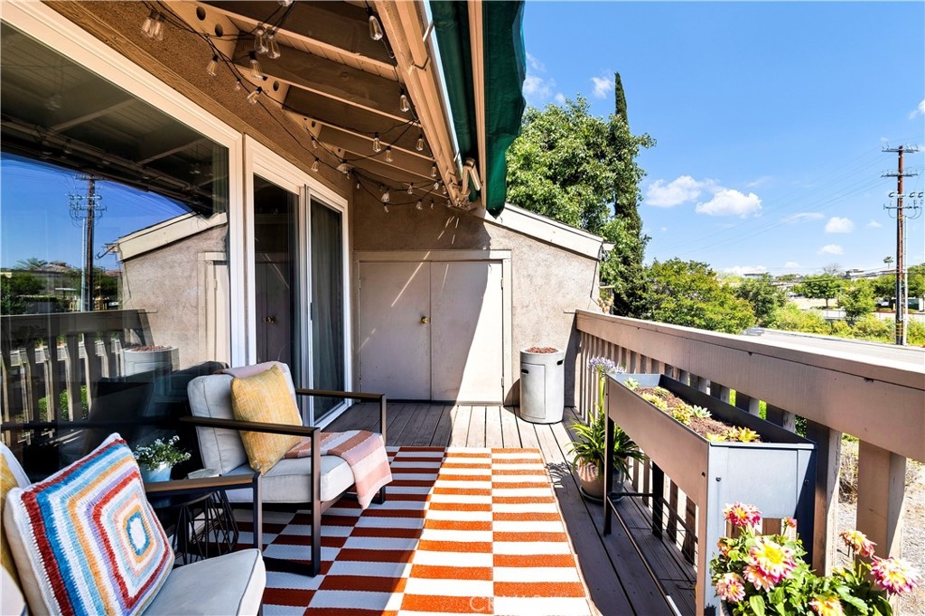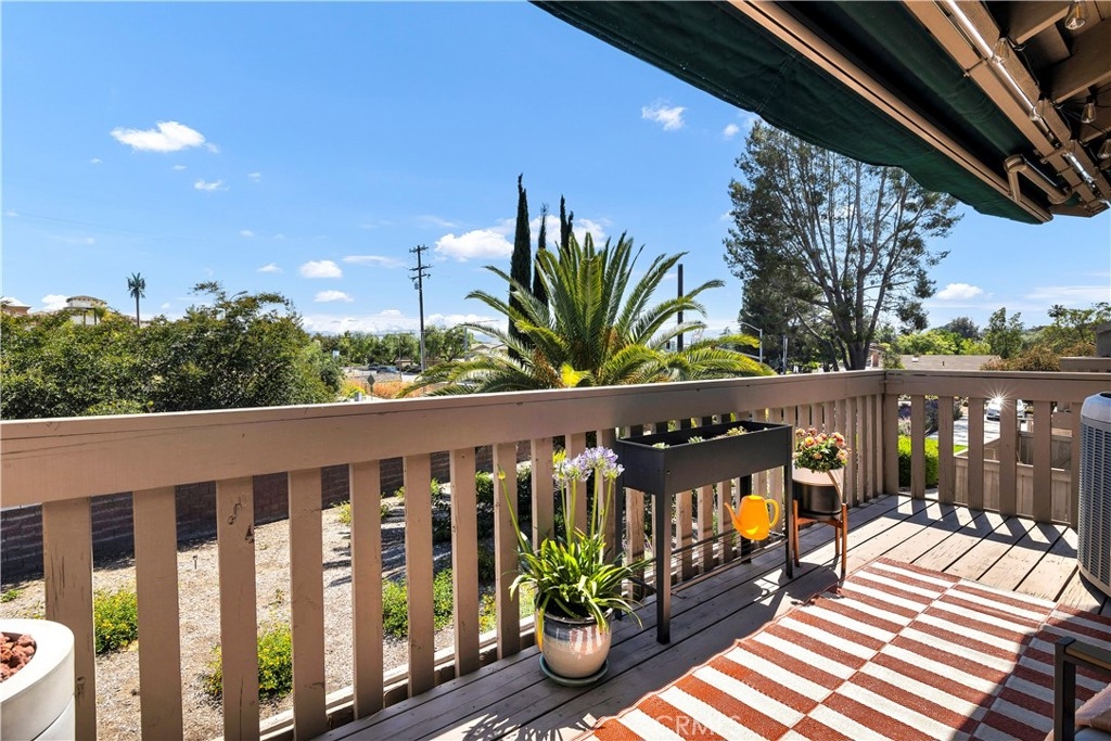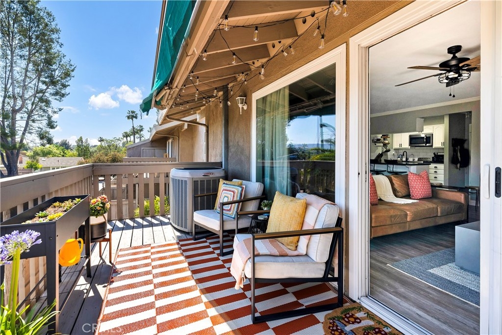 Welcome to Casitas Del Sol! Discover this beautifully remodeled second-story studio condo, located in a peaceful and charming community in Murrieta. This stunning unit features brand-new laminate flooring and abundant storage throughout the spacious living area. The kitchen has been completely updated with new cabinets, granite countertops, and stylish tile flooring. The full bathroom includes double sinks and a large closet for extra storage. Step out onto the large balcony patio, complete with a commercial-grade retractable awning, perfect for enjoying shade and privacy. The community offers onsite laundry facilities for added convenience. Casitas Del Sol is ideally situated in the eastern hub of Murrieta, within walking distance to the Murrieta Hot Springs Spa and Resort and just a short drive to major shopping centers. The well-maintained exterior features lush grass and trees, making it an excellent environment for walking pets and enjoying outdoor activities. Inside unit 344, you'll find a built-in entertainment center and an abundance of closet space, ensuring a clutter-free living experience. Don't miss this opportunity to own a model-like studio condo in a beautiful and quiet community. Schedule your visit today and experience the charm of Casitas Del Sol!