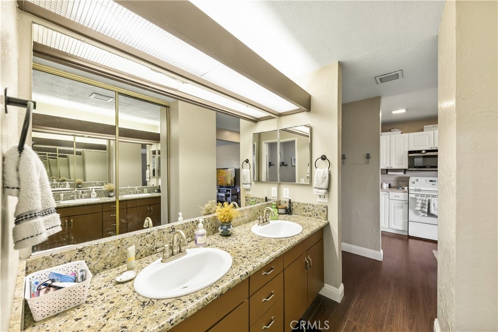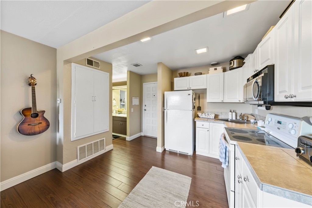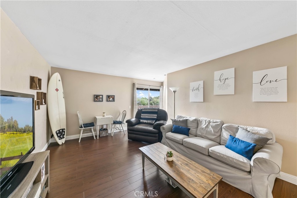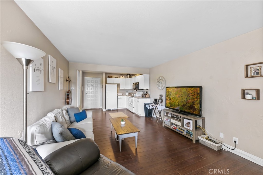BACK ON MARKET! Buyer did not perform. Welcome to a charming 1 bed 1 bath condo situated in the heart of Murrieta. This cozy residence has 762 square feet, wood flooring, carpeted bedroom and designed for optimal comfort and living. The living area seamlessly transitions into the dining and kitchen areas, forming a perfect setting for relaxation and entertainment. The kitchen boasts light and bright with ample cabinet space and it conveniently opens to family room for easy entertainment. The bedroom is generously sized, adorned with abundant natural light and a spacious closet. Remodeled bath offers convenience, storage and dual sinks. Each unit has large balcony. The bathroom is conveniently positioned and showcases contemporary fixtures and finishes. Laundry facilities are available within the building. Nestled in Murrieta, this studio condo enjoys proximity to shopping, dining, and entertainment options. Ample parking. With convenient access to the I-15 freeway, it's perfect for commuters and those who enjoy exploring nearby cities. Additionally, it is close to the upcoming Murrieta Hot Springs Spa & Resort. In today's market, this home represents exceptional value. Don't miss the chance to schedule a viewing and experience the beauty and comfort of this remarkable home.