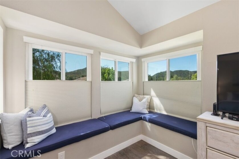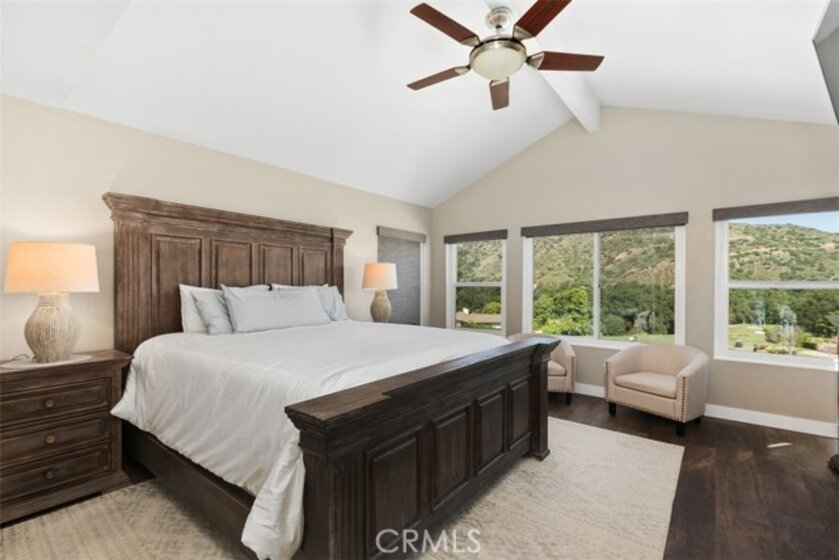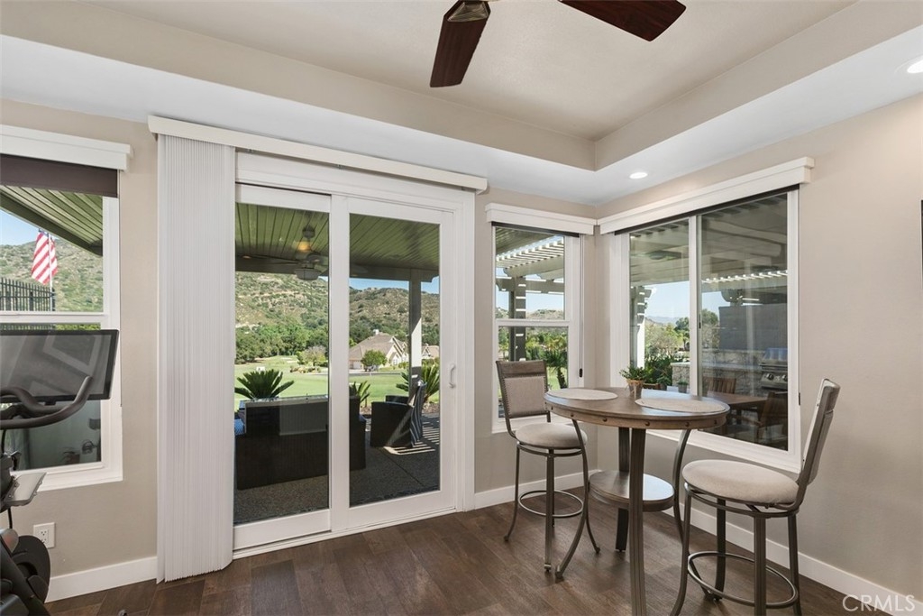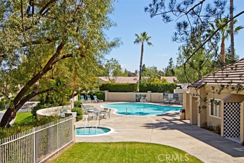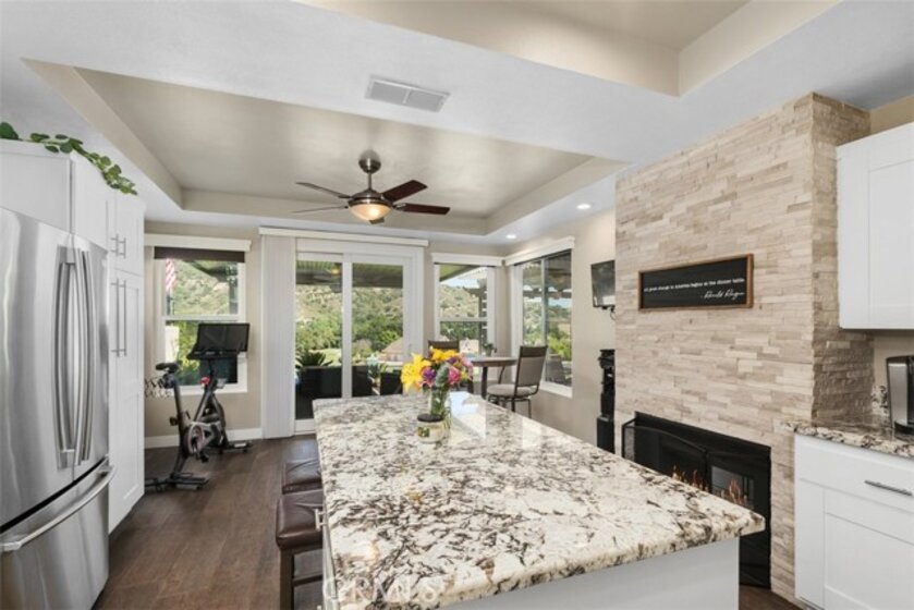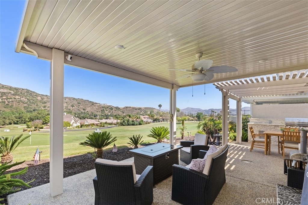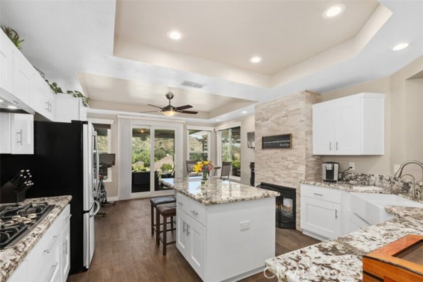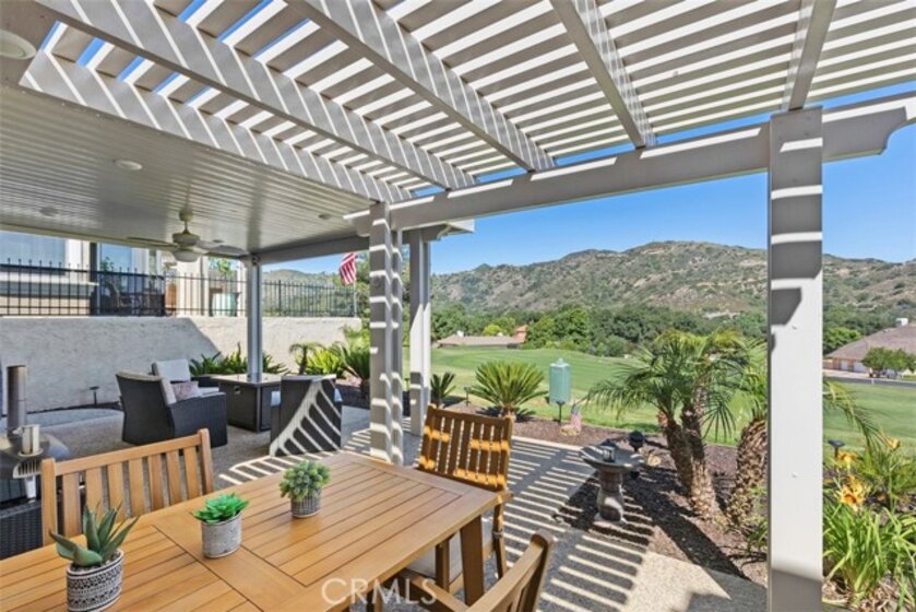Located on the par 4, 15th green with stunning views of the 15th and 16th holes at Bear Creek. Remodeled 2 bedroom suite unit with large kitchen with center island and kitchen nook, separate dining room and great room. See through fireplace between great room and kitchen with stacked stone is an eye catcher. Primary bedroom with 180 degree views, en suite bathroom includes double sinks, huge walk in shower, walk in closet and separate toilet closet. 2nd bedroom suite features corner seating with storage, walk in closet, private bath with tub/shower combo. With sliders to backyard off kitchen and great room, this unit is perfect for entertaining. Outstanding patio with built in BBQ w/ stacked stone and granite counters, solid aluminum patio cover with lighting and fan. Lounge chairs a must !! 2 Car garage with direct entry. With fairway, green and city light views, this unit will not last.