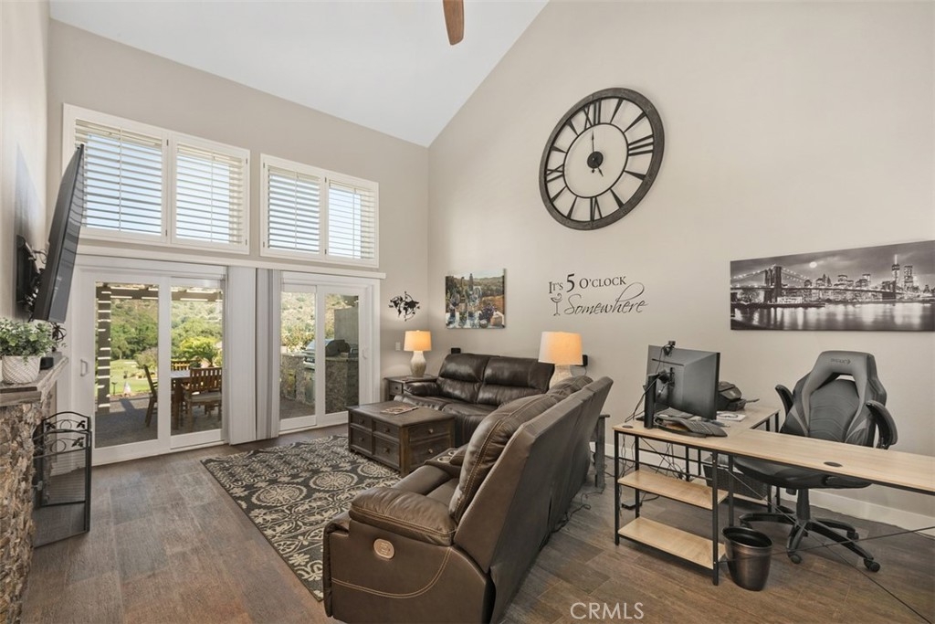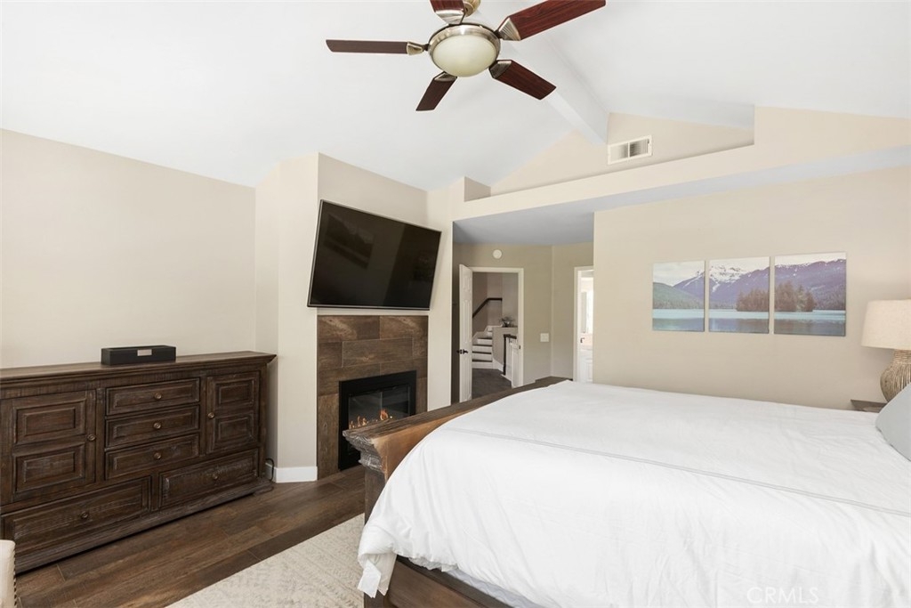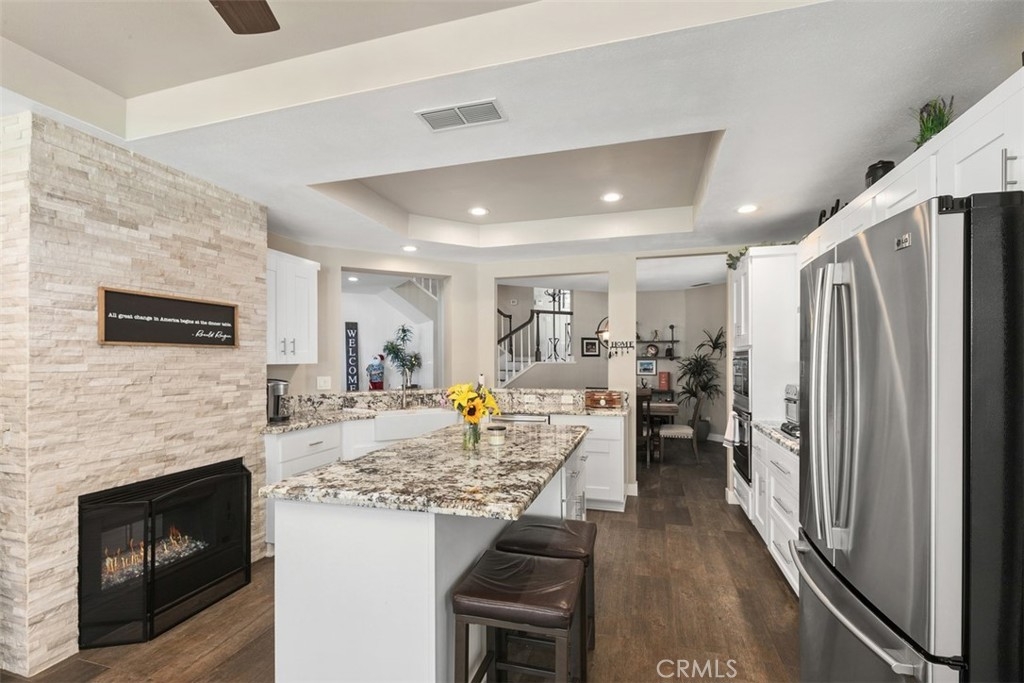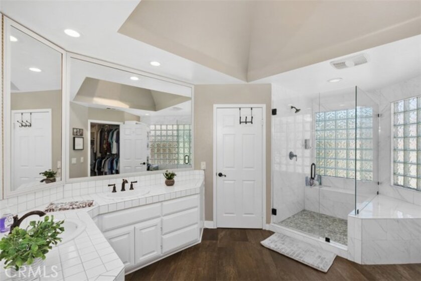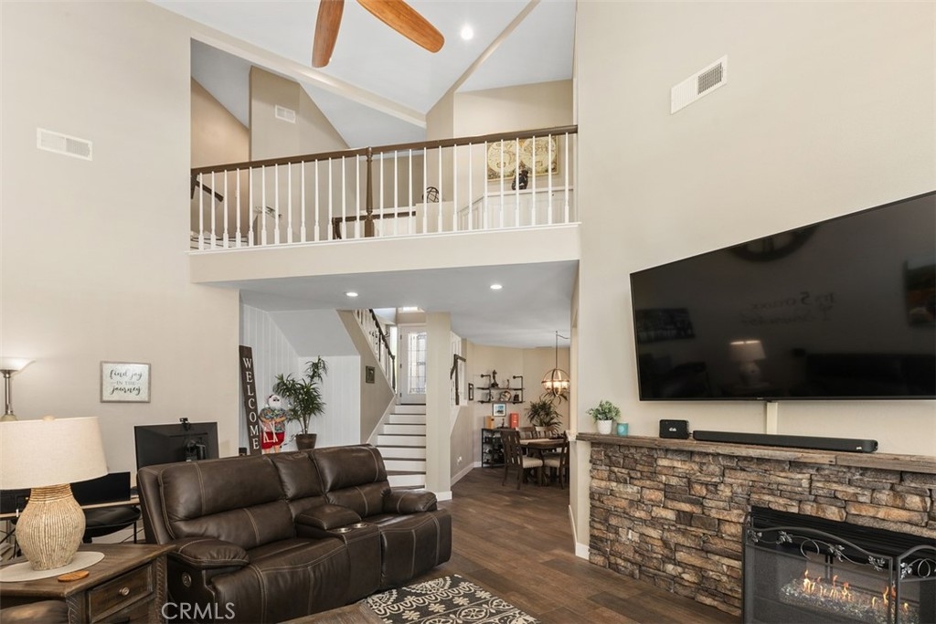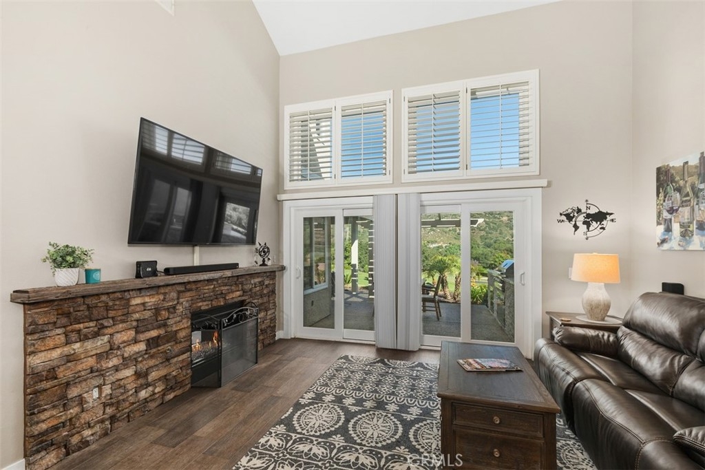 Located on the par 4, 15th green with stunning views of the 15th and 16th holes at Bear Creek. Remodeled 2 bedroom suite unit with large kitchen with center island and kitchen nook, separate dining room and great room. See through fireplace between great room and kitchen with stacked stone is an eye catcher. Primary bedroom with 180 degree views, en suite bathroom includes double sinks, huge walk in shower, walk in closet and separate toilet closet. 2nd bedroom suite features corner seating with storage, walk in closet, private bath with tub/shower combo. With sliders to backyard off kitchen and great room, this unit is perfect for entertaining. Outstanding patio with built in BBQ w/ stacked stone and granite counters, solid aluminum patio cover with lighting and fan. Lounge chairs a must !! 2 Car garage with direct entry. With fairway, green and city light views, this unit will not last.
