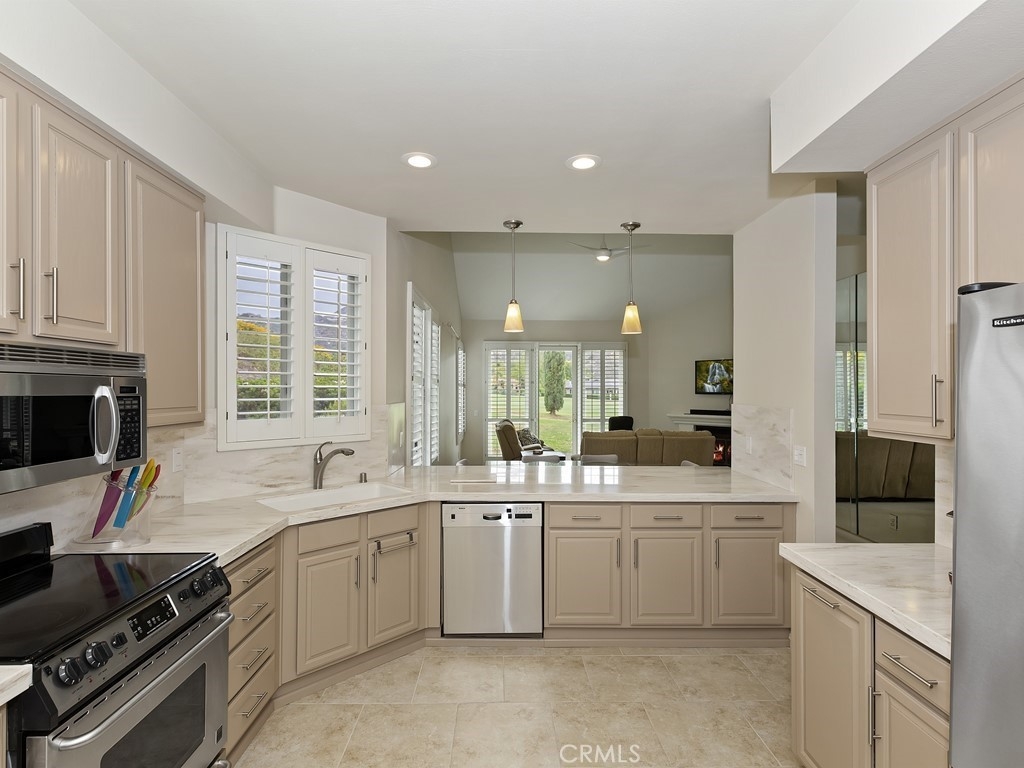 Spectacular single story home in Bear Creek's Country Club Villas overlooking the 15th hole on the Golf Course - with 180 degree view of the course and mountains beyond - with large back and side yard - this is a special property! Enter into a spacious family room with a cozy fireplace, with a French door to the patio overlooking the golf course. The family room is open to the recently remodeled kitchen with stainless appliances, beautiful counters, tile flooring, breakfast bar, self closing drawers and cabinet hinges. There are two elegant Master Suites - with double sinks and vanity, each with a large bath and two large closets, plus a powder room, each with a door to a private patio. Bear Creek is Jack Nicklaus' Signature golf course adorned with ancient oaks and caressed by afternoon ocean breezes. Bear Creek is a guard gated community offering residents a private swim/tennis/fitness club and 24/7 security. Golf Club offers social and golf memberships. Furniture is also available! Please follow all guidelines pertaining to Cov19 regulations.