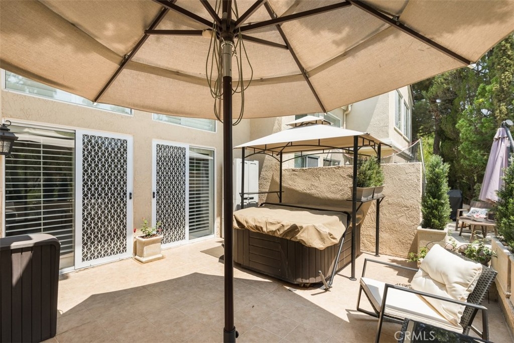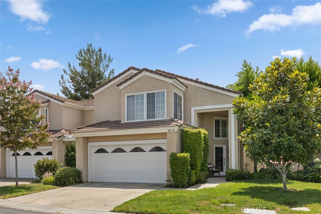 BEAUTIFUL MURRIETA HOME located in the prestigious Bear Creek gated community with 24-hour patrolled security and a Jack Nicholas designed Golf Course and Country Club. Enjoy resort-like living in this nicely upgraded multilevel townhome located on a quiet cul-de-sac. Once you enter through the beautiful beveled, leaded front door enjoy the gorgeous open appearance with living area down and sleeping quarters up with easy-to-maintain flooring throughout. In the living area enjoy the tall ceilings, the stunning modern chandelier, a fireplace with newly updated handcrafted grate doors and wainscoting. Attractive plantation shutters are noted on most windows and doors throughout the home with security screens off the living room door. Beautiful crown molding throughout most of the home. Kitchen has granite countertops with built-in work spaces for that home office, pullout shelves in cabinets, and stainless appliances including a double oven. Both master bedrooms are located upstairs with their own bathrooms with a second fireplace in one. Laundry is located on the main level where you will also find a half bath, extra storage and direct access to the garage. Home is equipped with a new Quiet Cool whole house fan easily keeping the home comfortable during those summer days. Access off the kitchen or living room opens up to a private patio with a hot tub and a fire table as well as an off-leash pet play yard on the side of the home. Garage has been equipped with a home electric car charger, epoxy painted floor, and storage racks. Bear Creek Community is located in the wonderful Murrieta School District. Community amenities are extensive including pools, spa, tennis courts, gym, banquet facilities, card rooms, and much more. Bear Creek also offers golf club memberships. Close to shopping, restaurants, and other amenities as well as the 15 freeway for those commuters.
