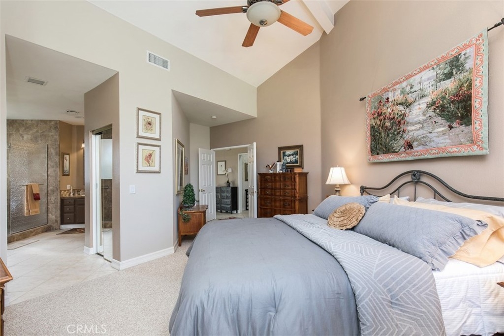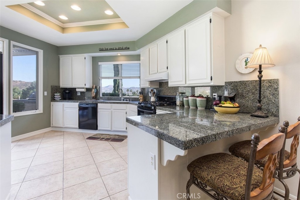 Single Story, Country Club Villa with one of a kind views !! Unit sits high above the par four, 15th hole on Bear Creek Golf Course with stunning view of the golf course, hills behind and city lights. Light, bright and open floor plan. Updated unit with ceramic tile floors and granite counters. Open kitchen to living room with fireplace and french doors leading to large patio. Atrium has been enclosed to bar area or whatever you desire. Large primary suite with private bath. Remodeled primary bath with large walk in shower, dual sinks and separate toilet closet. Secondary bedroom with bathroom off hall. Full patio across entire back of unit with fencing and built in BBQ. A must see to truly appreciate the stunning views from this patio. Attached 2 car garage with storage.