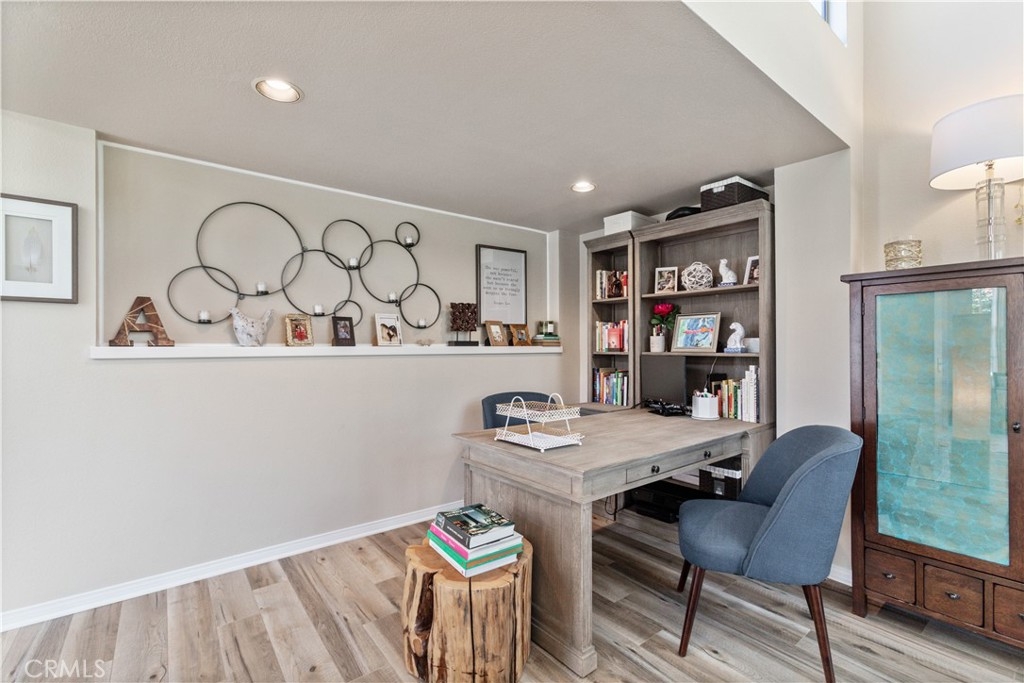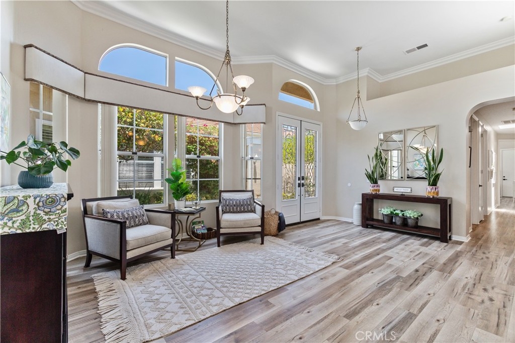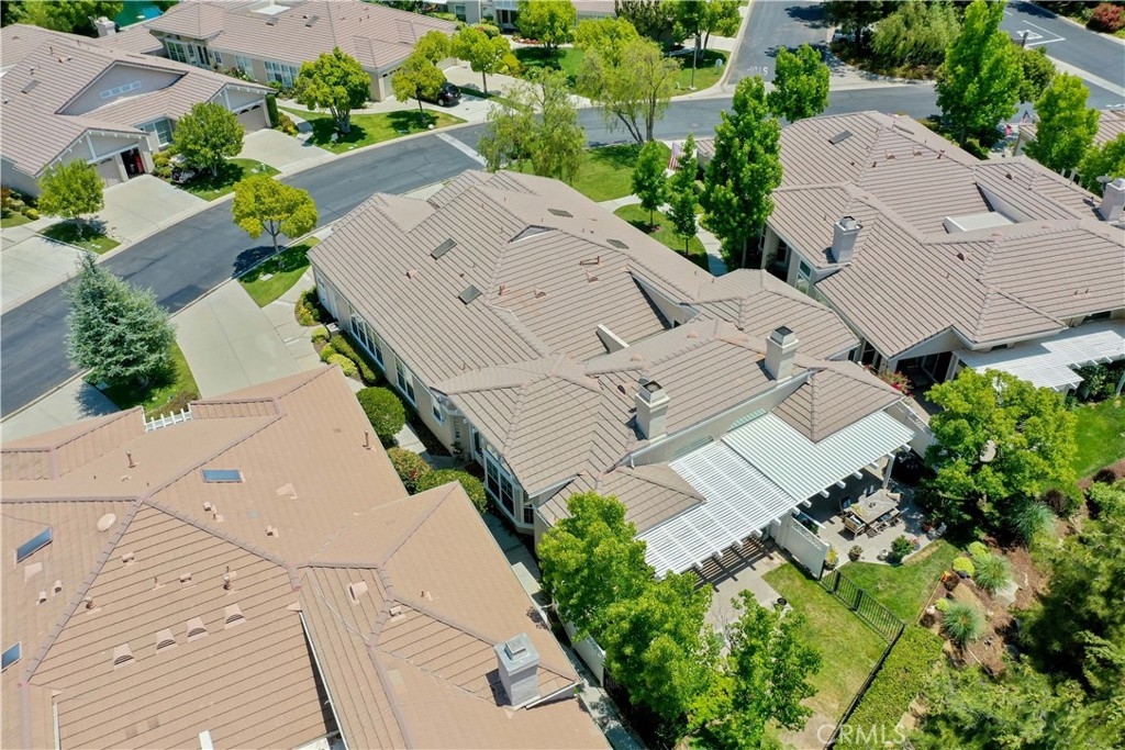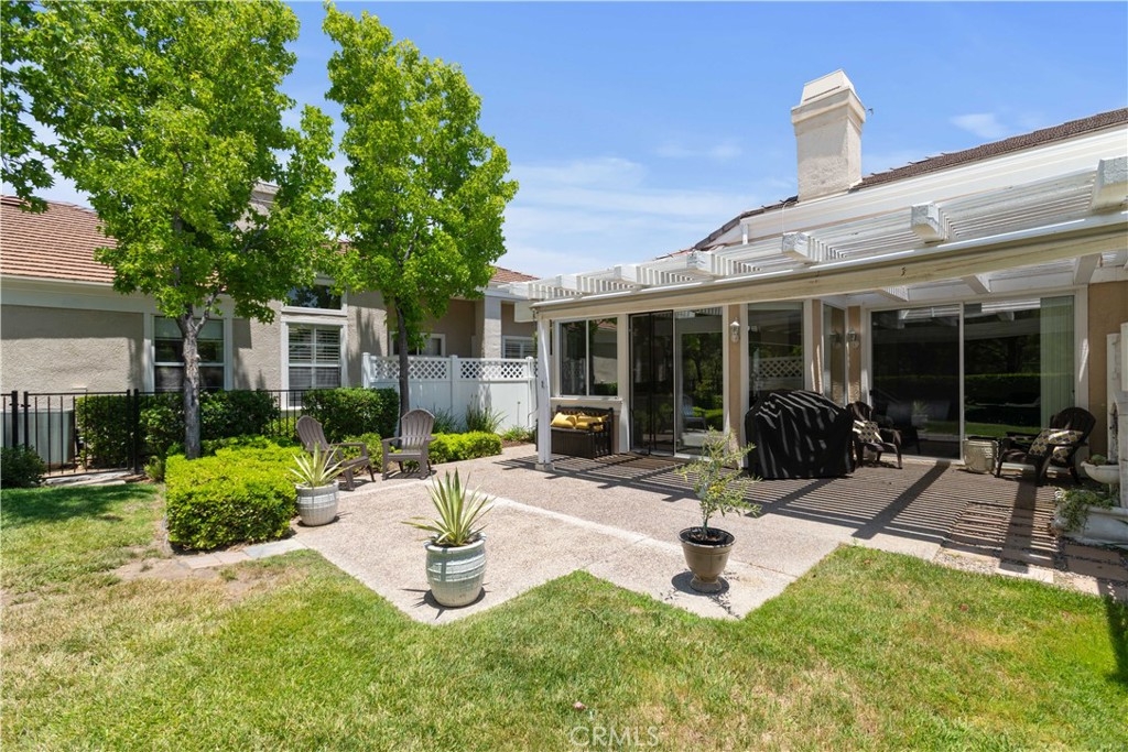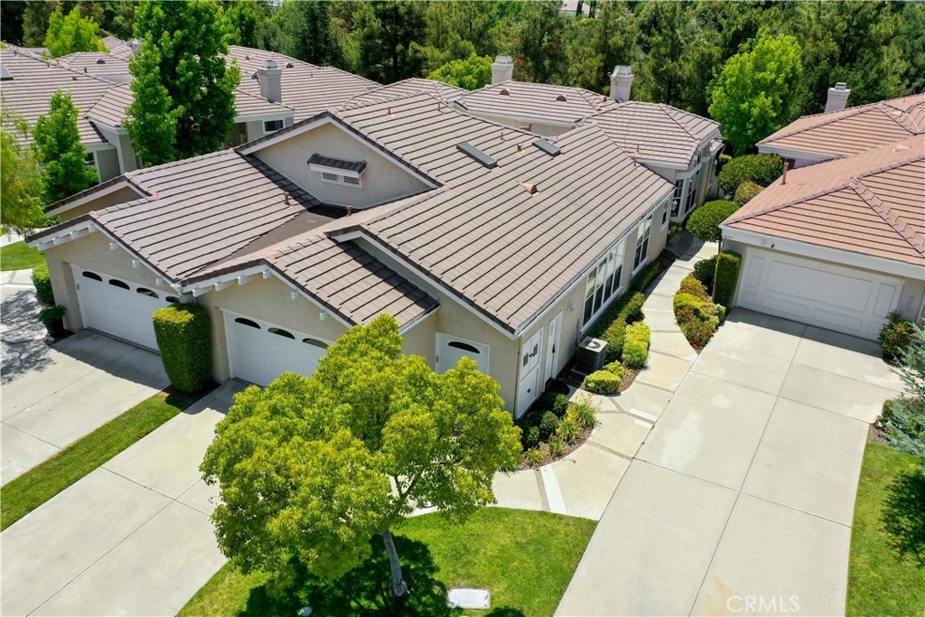 Stunning single story retreat with gorgeous wooded view located in the guard gated golf community of Bear Creek! You'll love the incredible light and open and airy feeling in this gorgeous 3 bedroom, 2 bathroom home with wide plank laminate flooring throughout, stainless appliances, finished garage with epoxy floors, 2 car garage plus golf cart garage, Nest thermostat, and brand new alumawood patio cover (not pictured). You must see this home in person to truly appreciate its beauty!
