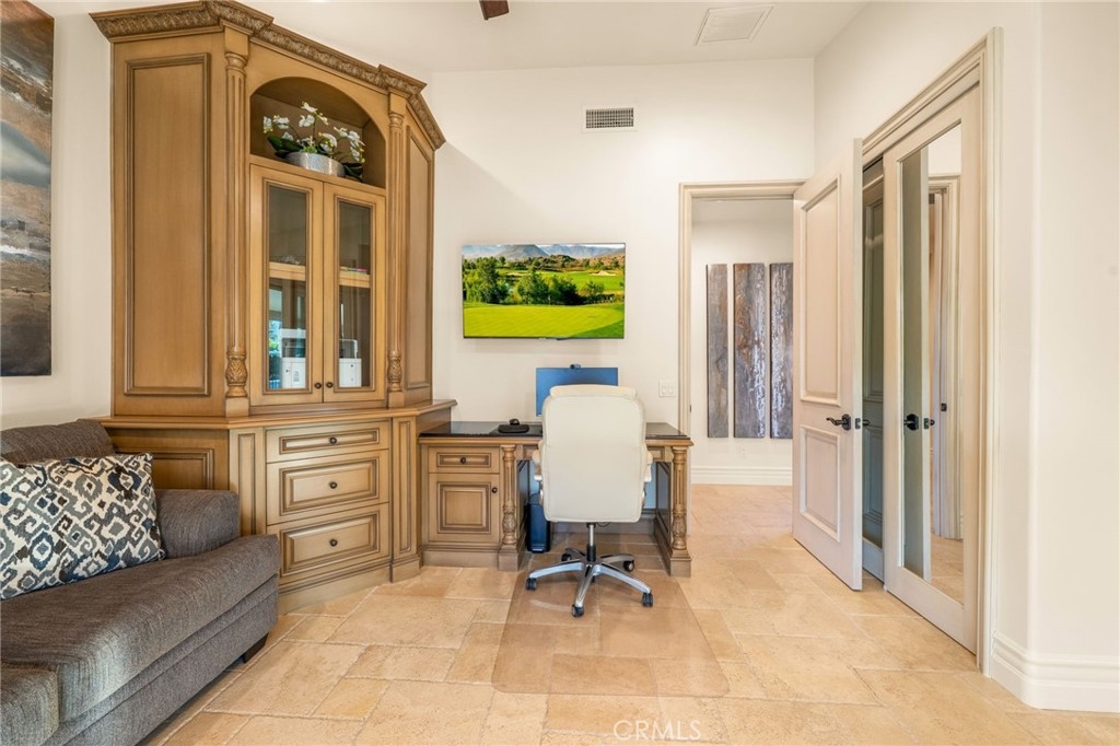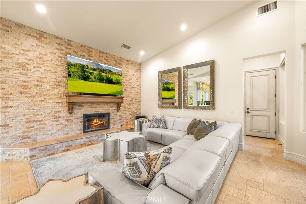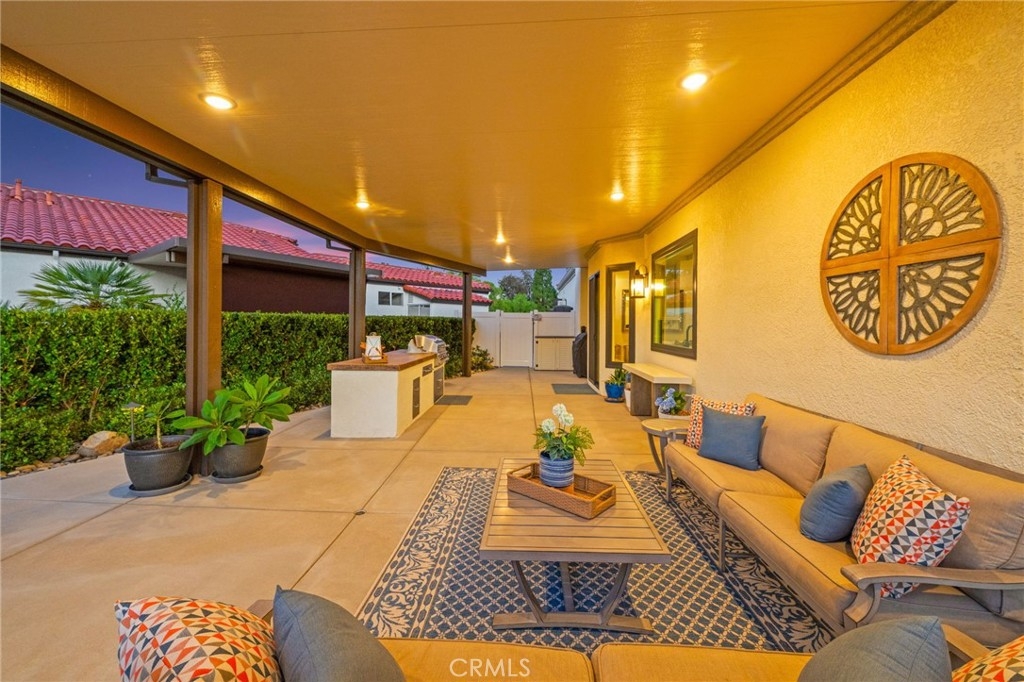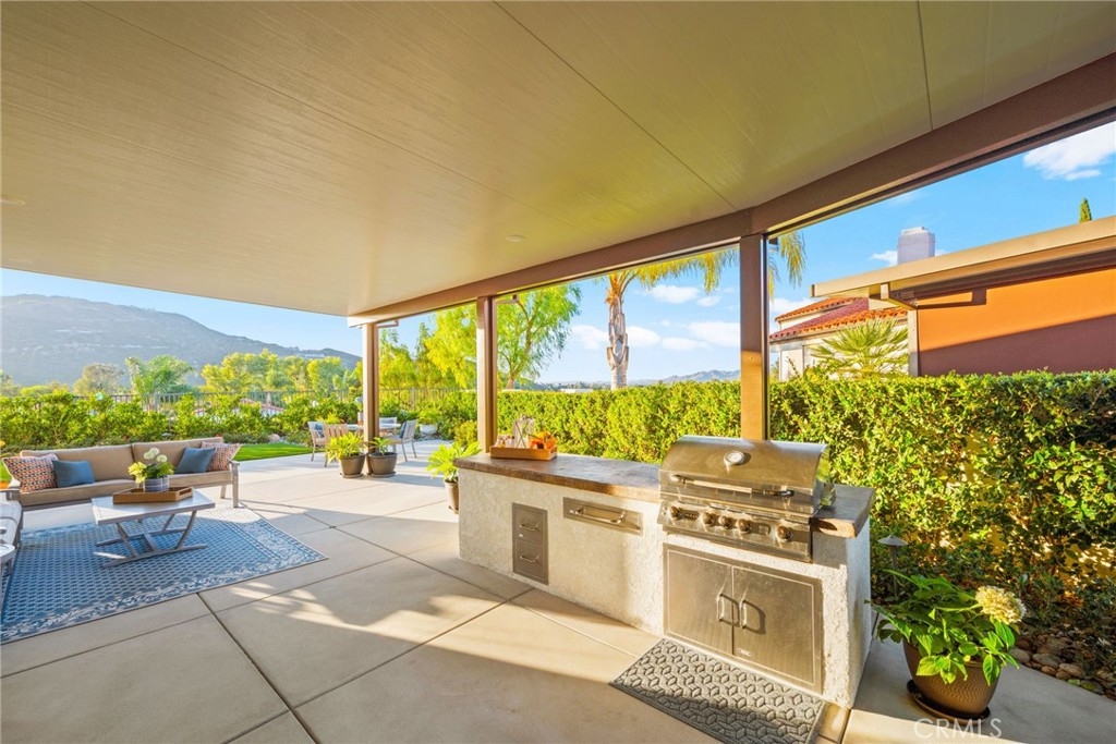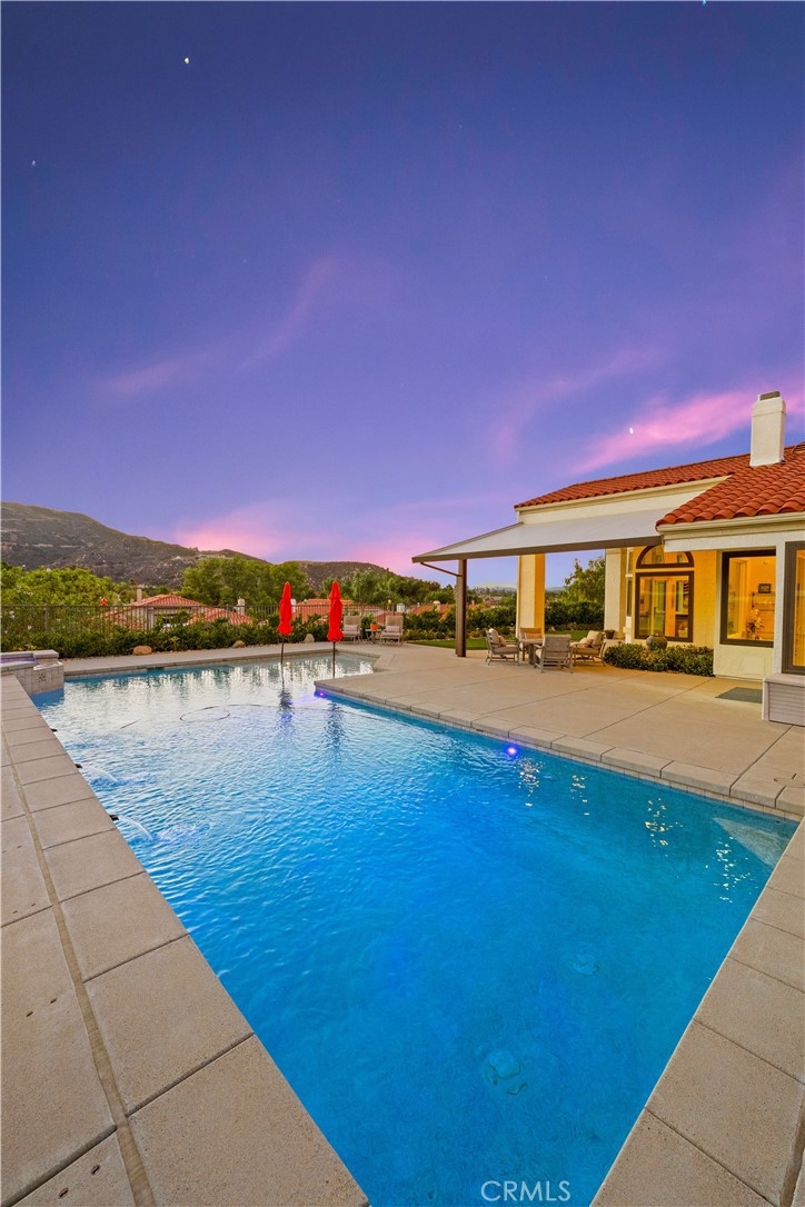 Elegant Single-Story Home in Bear Creek~Welcome to 22901 Saint Annes Court, located in the prestigious guard-gated community of Bear Creek. This beautifully upgraded single-story residence offers 3 bedrooms, 3.5 bathrooms, and a floor plan designed for both comfort and entertaining. Step inside to discover an extensively upgraded chef’s kitchen, featuring stainless steel Bosch appliances, a custom-panel built-in Sub-Zero refrigerator, high-end custom cabinetry with built-in spice racks, striking black granite countertops and an oversized center island—perfect for hosting family and friends. The living room boasts a stylish entertaining bar area, while a separate dining room provides a refined space for gatherings. The home’s thoughtful design continues outdoors, where you’ll find a sparkling pool and spa and breathtaking views of the La Cresta hillside—an ideal backdrop for relaxation or entertaining. Additional features include a 2-car garage plus a golf cart garage, offering convenience for golfers and extra storage needs. Bear Creek residents enjoy a private, secure lifestyle close to shopping, freeways, and award-winning schools. Just minutes away, the Santa Rosa Plateau Ecological Reserve offers miles of scenic trails for horseback riding, mountain biking, and hiking, with much of the land preserved for protected wildlife. This home seamlessly blends luxury, comfort, and natural beauty—an exceptional opportunity to live in one of Murrieta’s most coveted communities.