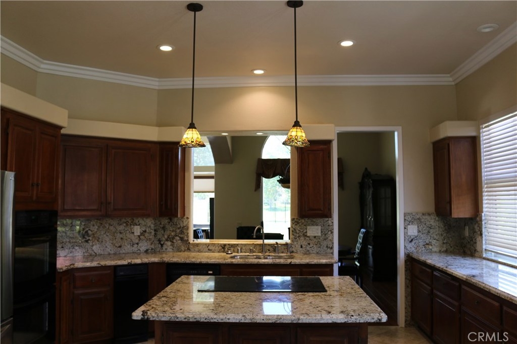 HUGE PRICE DEDUCTION!!! GOLF COURSE VIEW! PRIVATE POOL AND SPA! Turnkey beautiful home located in a quiet neighborhood. Fairway Estates pool home with fabulous golf course view. Wrought iron fencing at the rear perimeter for privacy. Private courtyard with double door leaded glass entry. Grand entrance passing large roman columns into step down living room. Open, light and bright with lots of windows. Custom window coverings, crown molding, custom porcelain tile and raised laminate wood flooring. Kitchen offers double oven, granite counter tops, stove with pop up fan, recessed lights, island breakfast bar and nook and walk in pantry. Kitchen opens to family room. Huge formal dining room to entertain your guests. Each bedroom has it's own bathroom with granite counters also slider out to patio from each bedroom. Ceiling fans, mirrored wardrobe doors in secondary bedrooms. Enjoy the 180 degree 14th-hole view across your own pool and spa in this highly sought after gated community.