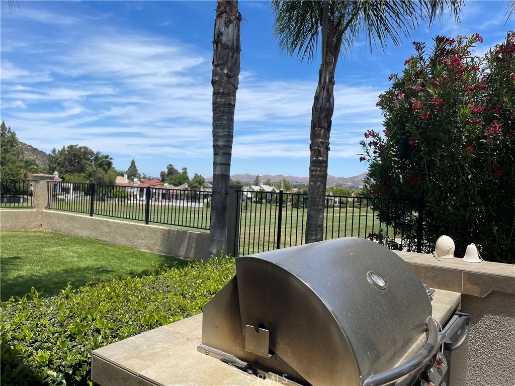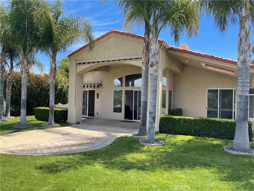Lovely single story Fairway Estate home. Located in the middle of the par 5, 14th hole in the gated community of Bear Creek. Enter through gated courtyard to leaded glass double doors and immediately capture the stunning views. Large formal entry with wrap around bar and huge great room with fireplace. Remodeled kitchen with newer appliances features separate breakfast room and separate dining room. Duel master suites and office/ 3rd bedroom make this the perfect model. First master suite features fireplace, built in wall unit with en suite bath which includes separate, tub, walk in shower, double sink vanity and large walk in closet. Second master suite features walk in closet private patio en suite bath including separate tub, large walk in shower and double sink vanity. Third bedroom currently being used as office with build in cabinets and shelving. Fully fenced yard, extended patio and built in BBQ, great for entertaining. Two car garage with direct access and separate golf cart garage.