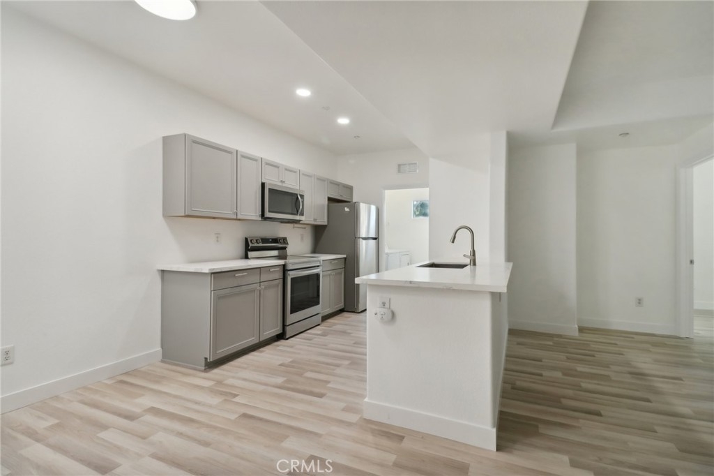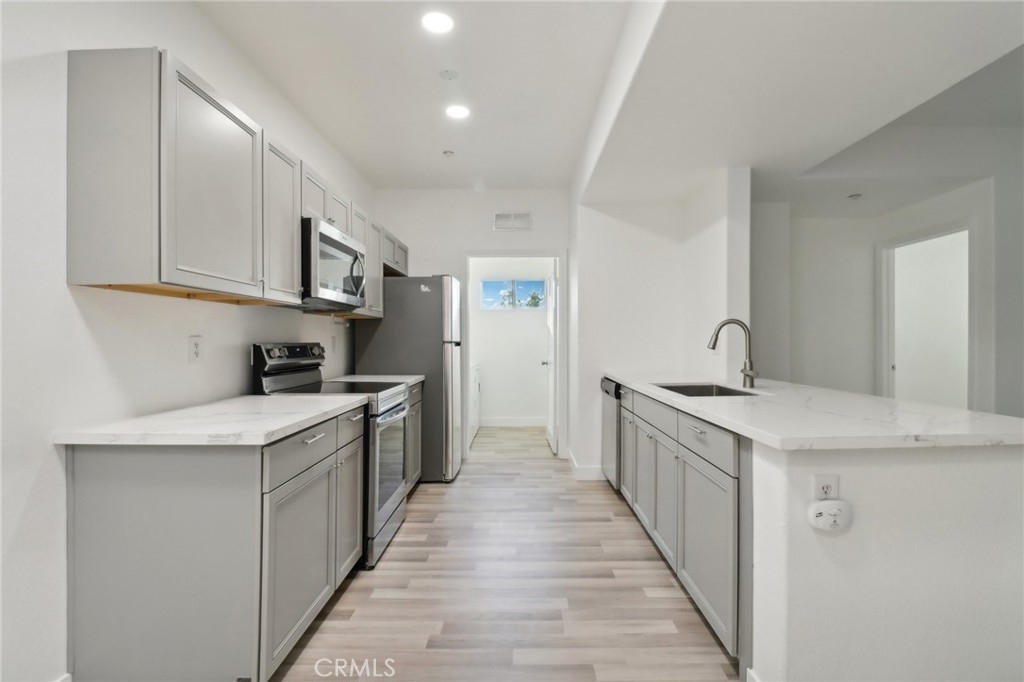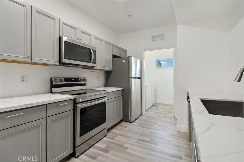 SPECTACULAR, TOTALLY REMODELED 3 BEDROOM CONDO- You're going to love living in this beautiful home! This Condo has been thoughtfully laid out to provide a generous living space and maximum storage. There is brand new LVP and baseboards throughout, the entire condo has been freshly painted with a neutral color, it has LED lighting throughout, and plenty of natural light! The spacious Living room creates an inviting space for entertaining or hanging out and the covered Balcony is an extension for relaxing or getting some fresh air. The Gorgeous Kitchen showcases brand new stainless appliances, stunning gray cabinets, quartz counters, and built in desk area. There is enough space for a 4 person dining table off the Kitchen! The Laundry room is situated off of the Kitchen, making it more quiet while getting that chore done! What's great about this Condo is how the rooms are set up- the Primary Suite is set on one side of the home, with it's own Bathroom that has a single sink vanity and a shower/tub combo. The fancy Bathroom mirrors will impress with their lighting that goes from warm to cool- which is really great for anyone who might be putting make up on. On the other side of the home you will find the 2 other Bedrooms with an adjacent Bathroom that also has a single sink vanity and a shower/tub combo. All 3 Bedrooms have walk in closets and there are 2 extra storage closets in the home. Everything has been laid out to function perfectly for you! This Condo includes a Single Car Garage too! There is ample guest parking, which makes having visitors a breeze! The GATED Condo Community includes a well equipped fitness center with a sauna, a sparkling pool and spa, a couple of playgrounds, and community spaces to relax in. You're in the heart of Murrieta, near the 15 Freeway and all major shopping and restaurants. From top to bottom, EVERYTHING IN THIS CONDO IS BRAND NEW. You just need to bring your stuff! It doesn't get better than this! Come see it today-