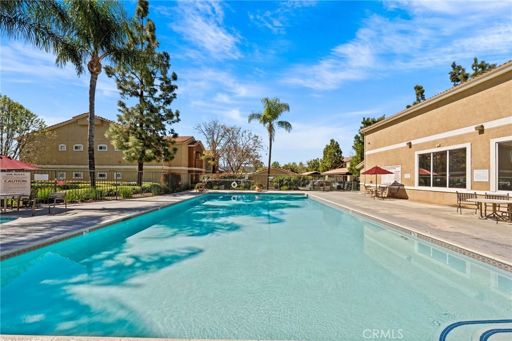 Welcome to this charming 2-bedroom, 2-bathroom condo located in Madison Villas in Murrieta! This beautiful home offers 1,159 sqft of spacious living and has been freshly painted with new floors, new baseboards, ceiling fans, and stylish new light fixtures, giving it a contemporary and inviting feel. The kitchen comes with all appliances, and the condo is equipped with full-size laundry (washer and dryer) for ultimate convenience.For added storage, this unit includes a small storage room and a 2-car garage, providing plenty of space for all your needs. You’ll also appreciate the designated covered parking spot right at the front of the complex and unit. Situated as a convenient bottom-unit, you'll enjoy easy access and privacy while being just steps away from all the community amenities. Relax and entertain outdoors on your private patio, or enjoy the fantastic community amenities, including a sparkling pool, a fully-equipped gym, and more. This home is ideally located near a variety of dining options, shopping centers, and all the conveniences you need. Plus, with lower HOA fees, it’s an affordable option that makes this home an even more attractive choice! Come see why this is one of the best units in the community.