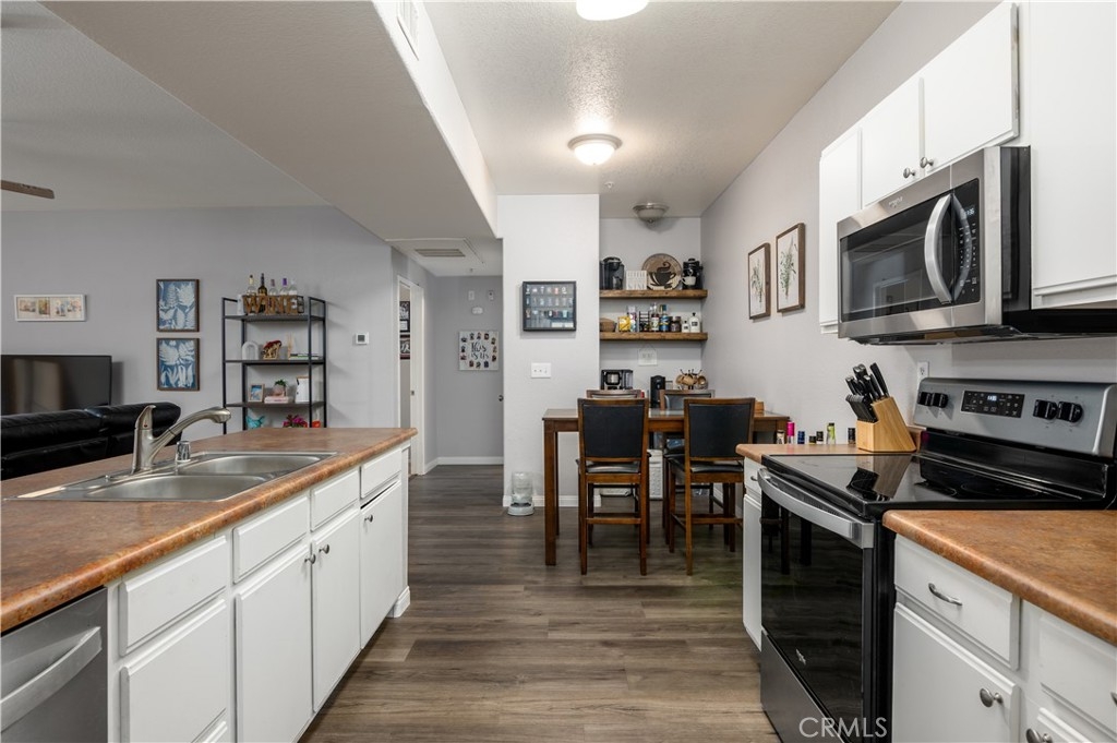 Welcome to this adorable second-level condo located in the gated community of Madison Park. This quiet upstairs unit features the open living concept, indoor laundry room, a primary suite with walk-in closet, secondary bedroom with walk in closet, newer vinyl flooring, ceiling fans, and new stainless appliances. Enjoy the cute patio ,1 car garage and plenty of storage. The community features a large pool, gym, and clubhouse surrounded by well maintained landscaping. This home is conveniently located near Old Town Murrieta, I-15 & I-215 freeways, shopping, food and entertainment! Also low tax area.