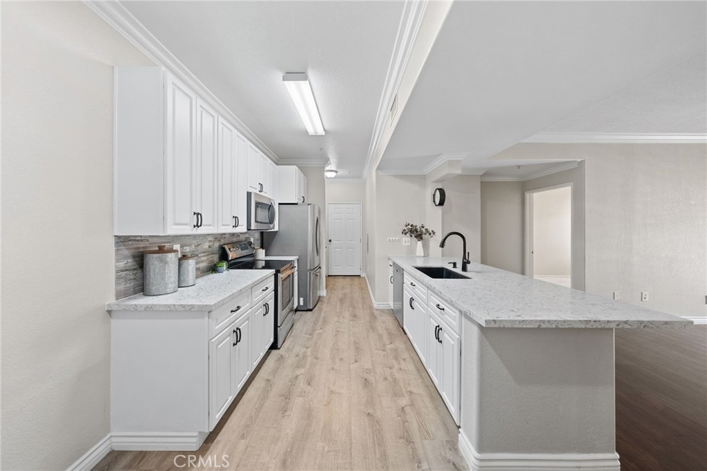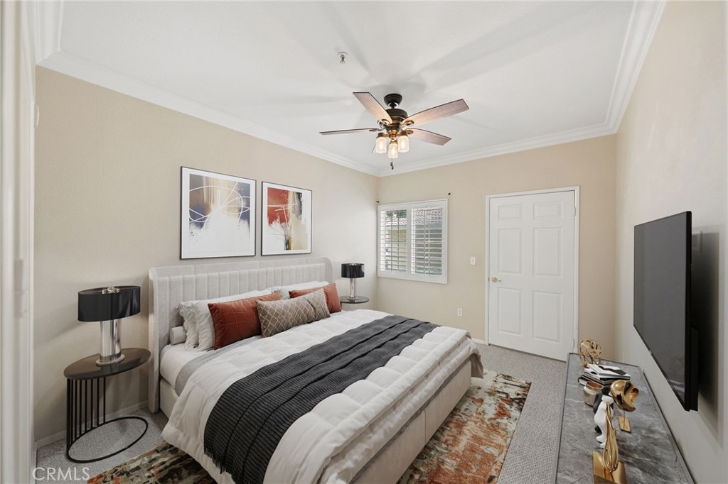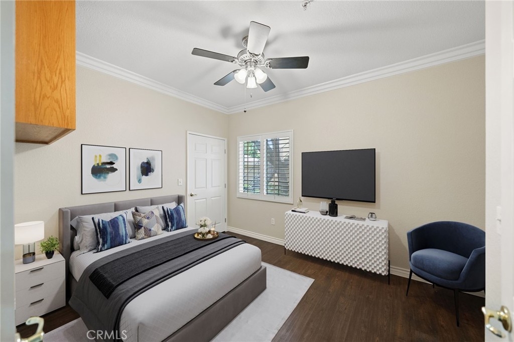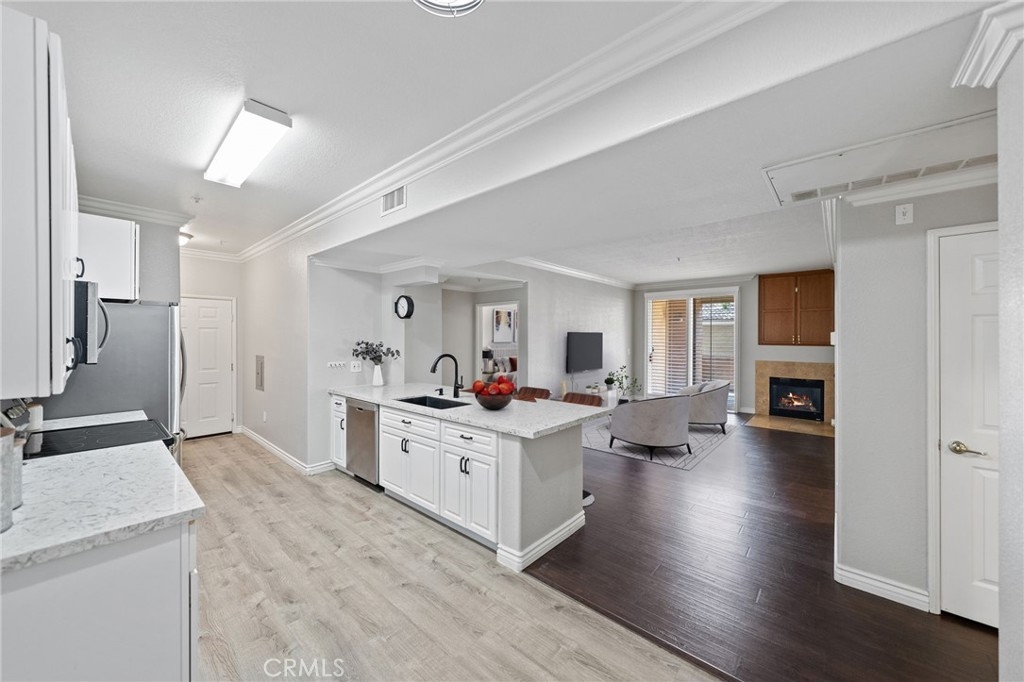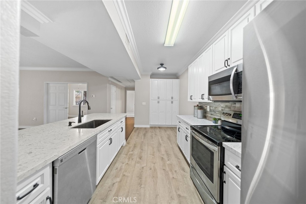 Welcome to your dream home in the vibrant community of Madison Park! This chic downstairs condo offers everything you need and more. Featuring three spacious bedrooms with walk-in closets, this home is perfect for anyone seeking modern comfort and convenience. Step into a kitchen that dazzles with quartz countertops, a sleek modern sink, and fixtures, complemented by stainless-steel appliances and a trendy tile backsplash. Throughout the home, you'll love the shutters on all windows, crown molding, and stylish granite in the additional bathrooms, adding a touch of elegance. Cozy up by the living room fireplace during winter or step out onto the patio with a cup of coffee on lazy mornings. The dedicated laundry room, complete with extra storage, conveniently leads to a two-car garage with direct access to the home. Plus, you’ve got an additional assigned parking space! Living in Madison Park means being part of a community that offers fantastic perks. Take a short walk to the community center to relax in the pool and spa or stay active in the fitness center. Located just minutes from your daily essentials and with easy access to the 15 freeway, this is the ideal home base for a dynamic lifestyle. Don't miss out on this rare opportunity to own a piece of West Murrieta’s finest living!