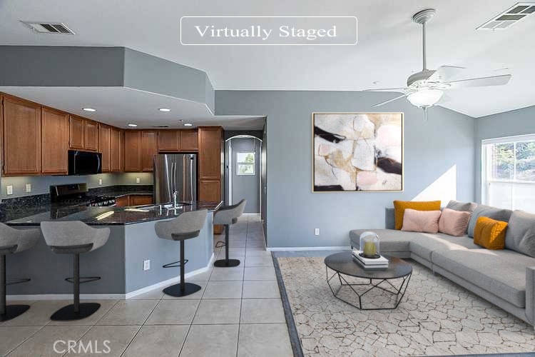 This Murrieta two-story home offers granite countertops, and a one-car garage. This home has been virtually staged to illustrate its potential.