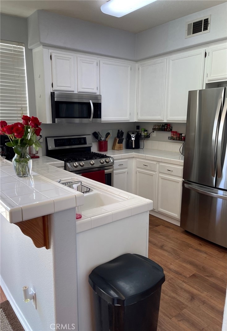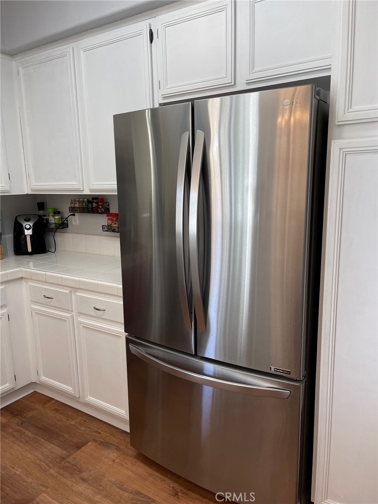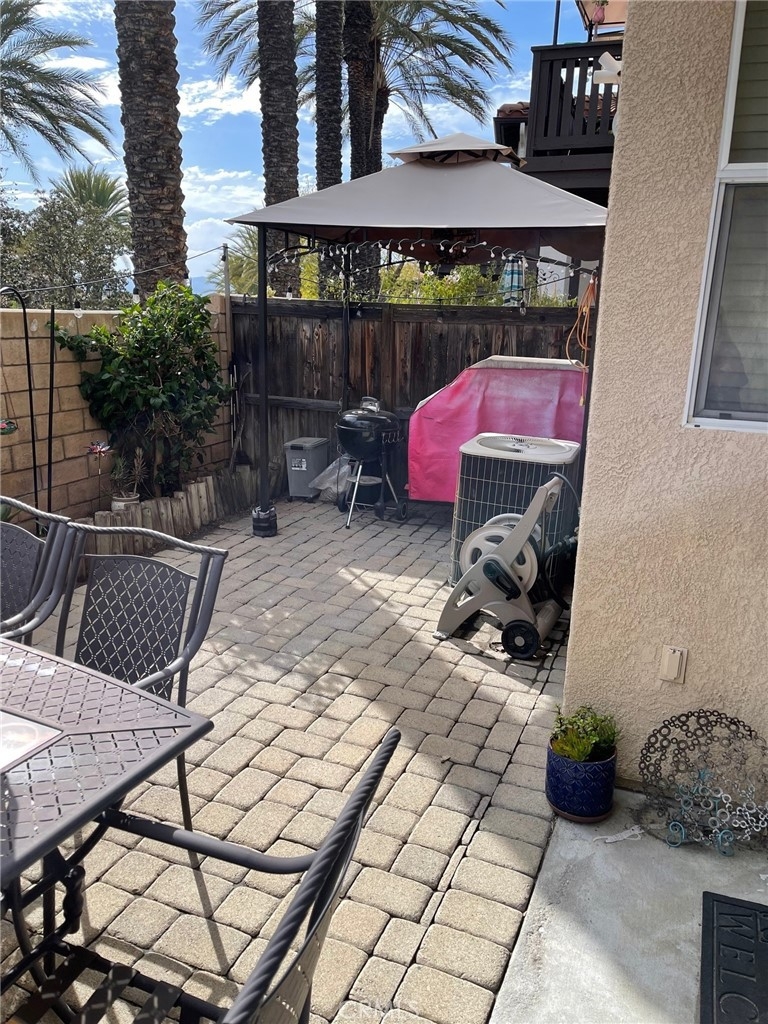 Wonderful 2 story condo with lots of extras located in the gated community of Montego Bay. Luxury Vinyl Plank installed on first floor, stairs and second floor. First floor includes living room with fireplace, dining area, kitchen with breakfast bar and upgraded stainless steel appliances from LG, laundry closet, guest 1/4 bath, slider to backyard and direct access to 1 car garage. Second floor includes 2 bedrooms both with private bathrooms, master bedroom features a walk-in closet off the bathroom. Washer, dryer, refrigerator, microwave, and range are all included with property. All furniture is negotiable as well. One car garage with overhead storage racks and direct access to home. Back yard is complete with a concrete paver patio, and small planter area. Condo is near the front entrance and is walking distance to the pool and spa. Association includes Pool, 2 spas, playground, and gated access to units.