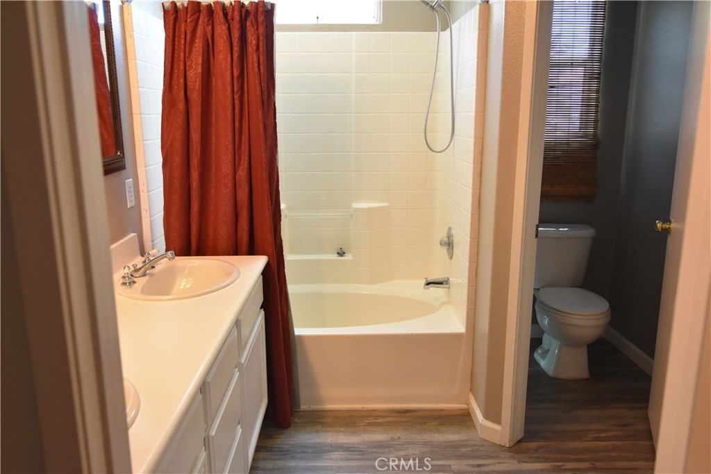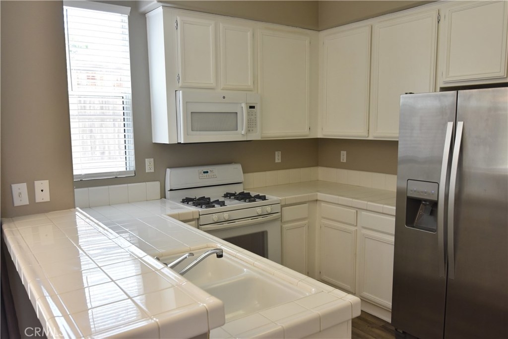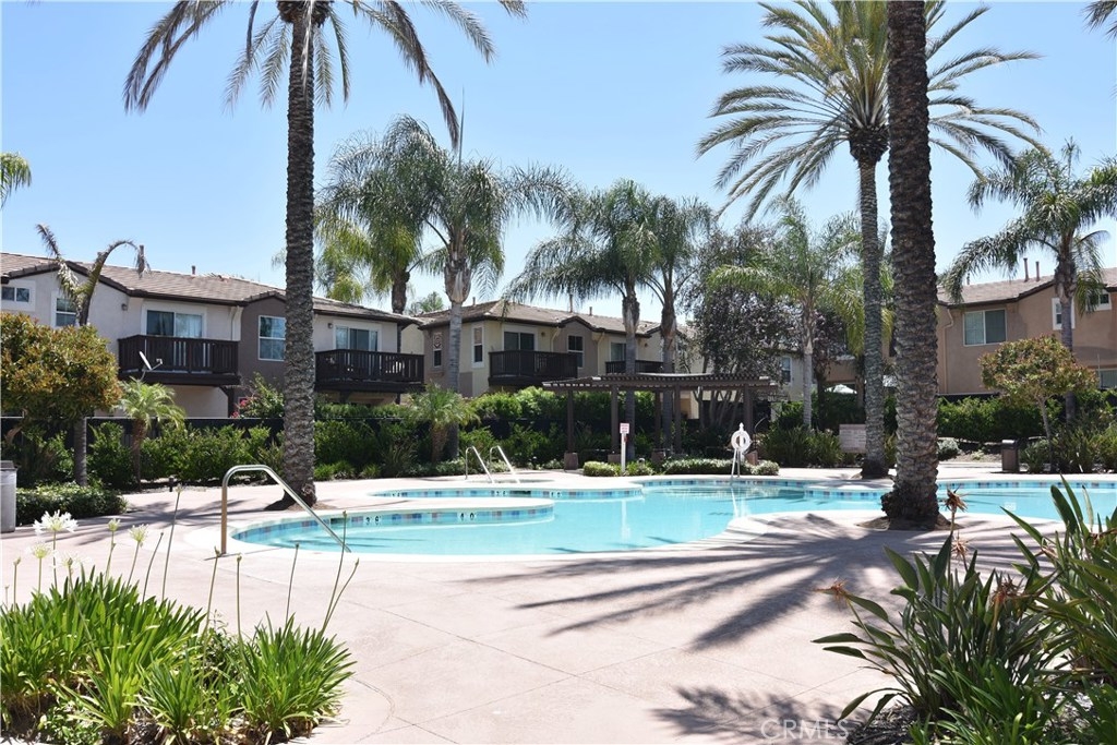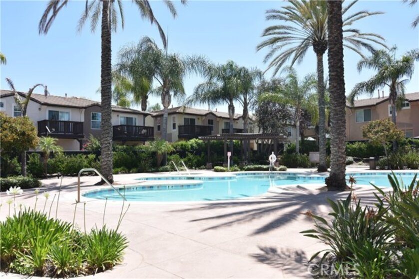 Great 2 bed/2.5 bath condo in the gated Montego Bay - This beautiful 2 bedroom condo has a really nice family room with fireplace, upgraded kitchen appliances, downstairs bathroom. Both bedrooms are a good size with private bathrooms. Nice solid surface flooring throughout. Great location with private backyard with patio and small area of grass. Attached one car garage, Extra parking available too. Montego Bay is a highly sought after gated community due to its resort style pool, 2 spas, tot lots, all within close proximity of the 215 & 15 freeways. Fridge included.