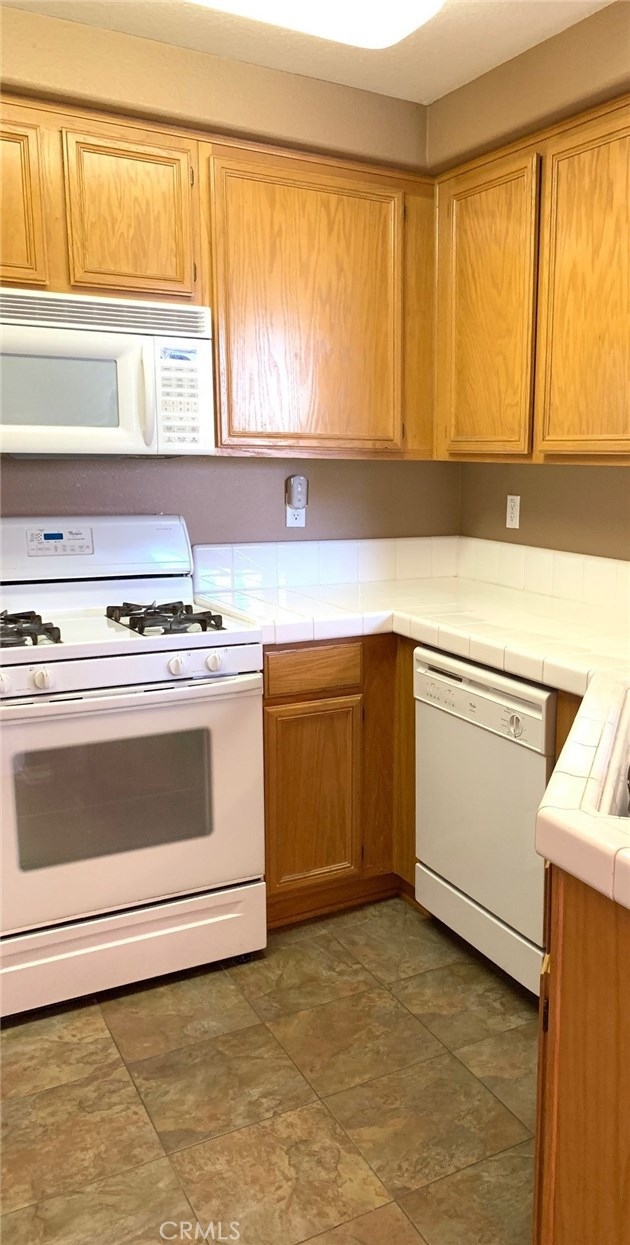 Affordable living at its best! Welcome to Montego Bay! A gated resort style condominium community. Montego Bay boasts lush tropical landscaping, large resort style pool & spas, bar-b-que picnic area and a tot lot. This beautiful corner unit shows pride of ownership and is move in ready! Enjoy evenings on the balcony or next to your living room fireplace. The main floor living space is located on the upper level with open concept living room and dining room, high ceilings, custom paint colors and lots of natural lighting. Enter the kitchen through the arch entry where you will find ample cabinetry, functional counter space, tile flooring and tile counter tops. The master bedroom is bright and spacious with a master bathroom en suite, dual vanity sinks, tub/shower combo, tile flooring and a walk in closet. The guest bedroom is light & bright with an adjacent full bathroom. There is direct access to the attached one car garage with automatic garage door opener. Centrally located to freeways, schools & shopping, Temecula Wine Country plus LOW TAXES!