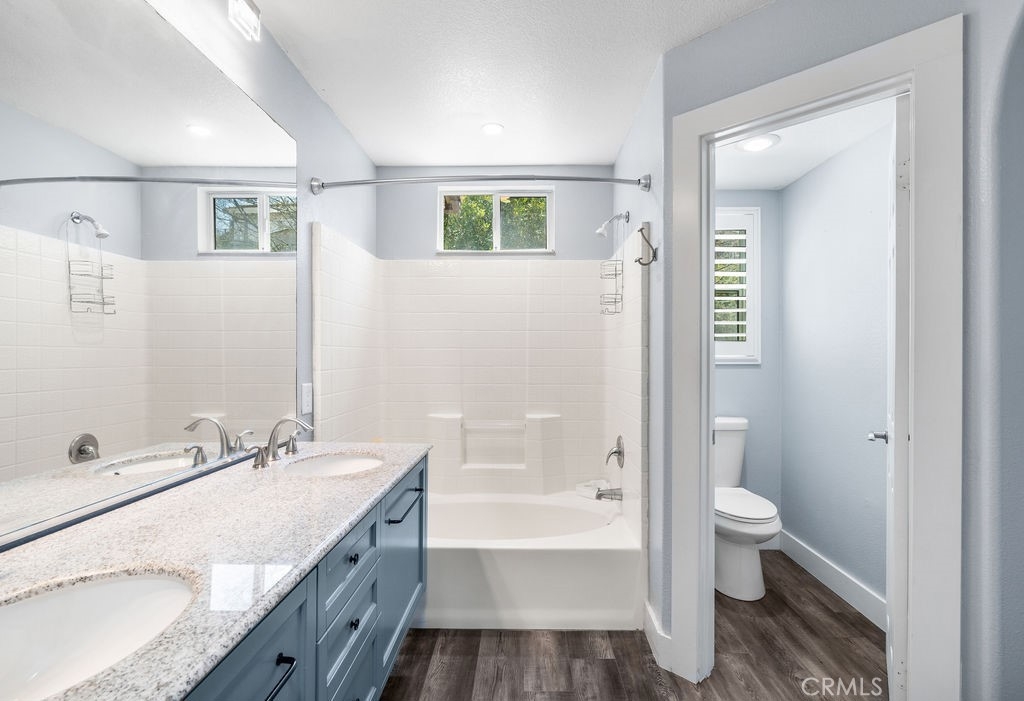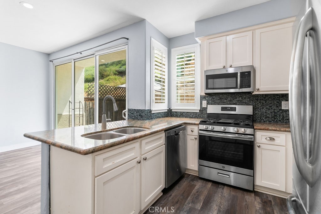 Welcome to Montego Bay, one of Murrieta's finest condo communities. Hard to find features like an attached single car garage and your very own private backyard (no balcony and actual yard space) this adorable condo has been fully upgraded with LVP floors both main and second level w/4 inch baseboards. Main level features a living room/dining combo with cozy fireplace, ceiling fan and custom plantation shutters. The kitchen features upgraded white shaker cabinets, granite slab countertops, stainless appliances and full tile backsplash. The main level also offers a laundry closet w/full size washer/dryer, half bath and direct access to the garage. The second level offers a primary suite w/private bath offering dual sinks, granite counters and walk-in closet and plantation shutters. Secondary bedroom also has a private bath, large closet and plantation shutters. The backyard is perfect for grilling and enjoying a meal on the patio, or for pets to enjoy the fresh air. There are no rear neighbors, backs to the greenbelt which adds ample light into the unit while maintaining privacy. Fantastic amenities w/gated complex, resort style pool area and playground. Easy freeway access, close to schools, dining and shopping. BONUS: home falls within Temecula School District boundaries.