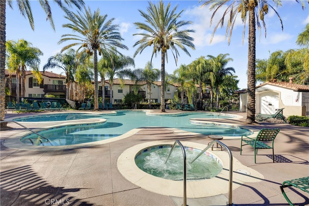 Curtain rising!! Highly sought after "Montego" Condominium in Murrieta! Experience the joy of owning your own home in this 2 Bedroom/2.5 Bath, 1,016 sq ft living space. Beautiful Kitchen features Tile Counter Tops, Dishwasher, Refrigerator, Maple Cabinets, Bar Seating, Breakfast Nook, Laundry Enclosure, and opens to your Living Room. Come home to comfort and relax in the large living area and outdoor patio. Upstairs are 2 nice size Bedrooms each with their own Bathroom. The Master Bedroom includes a Walk-In Closet and Master Bathroom. This home, also featuring A/C, ceiling fans, gorgeous plantation shutters throughout, beautiful carpeting, and so much more! Pet friendly, Low HOA fees, Community Pool, 3 Spas, this complex has everything you need and want. Located near golf courses, shopping, restaurants and entertainment!...Please be sure to view our videos for more views of this beautiful home.