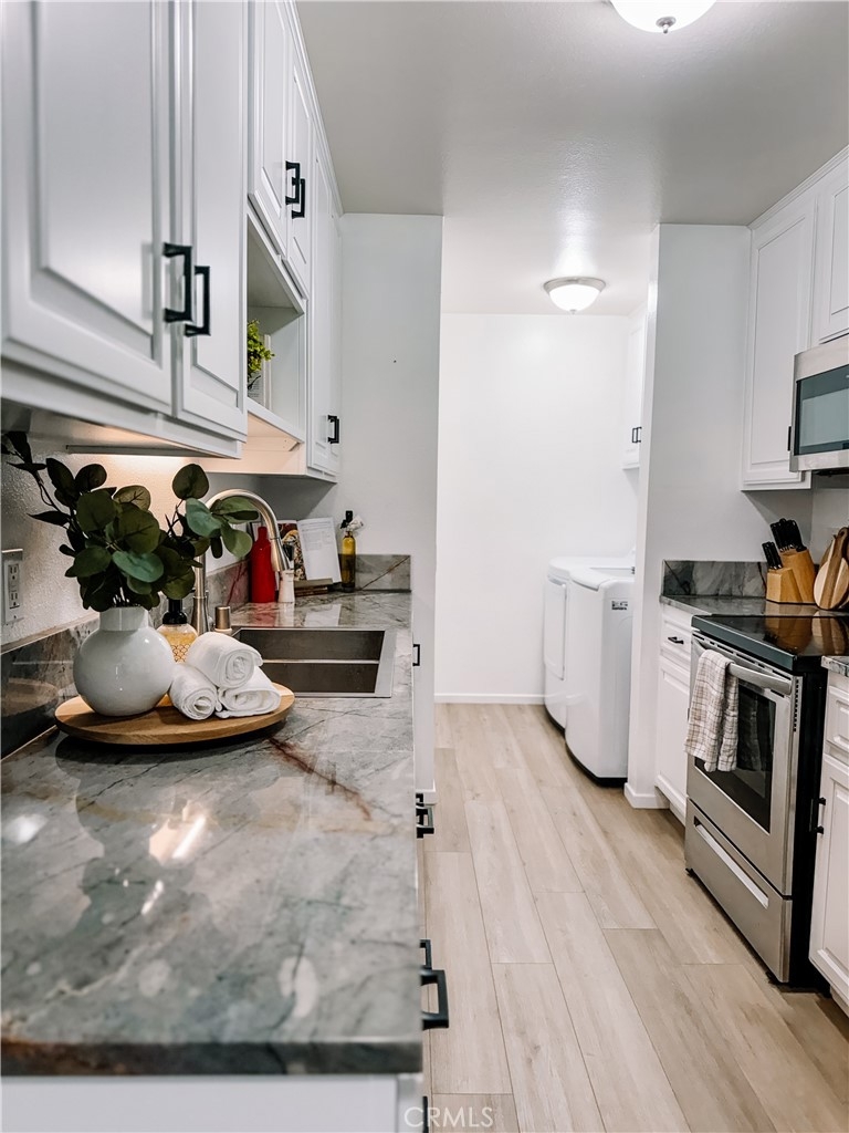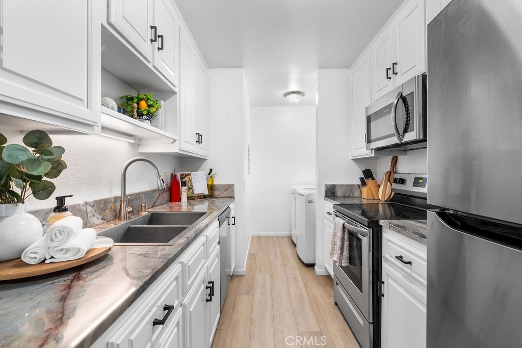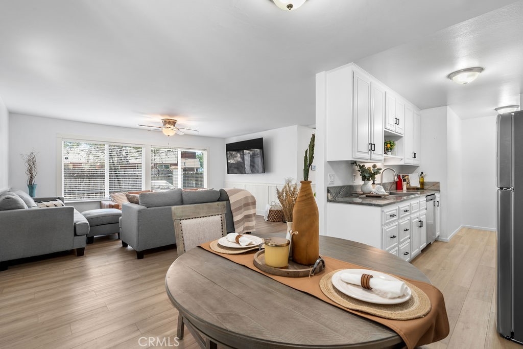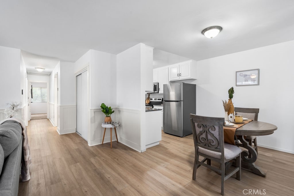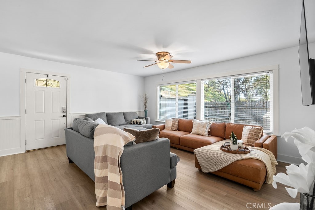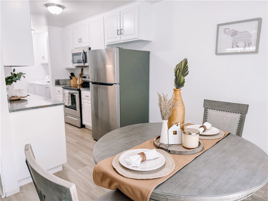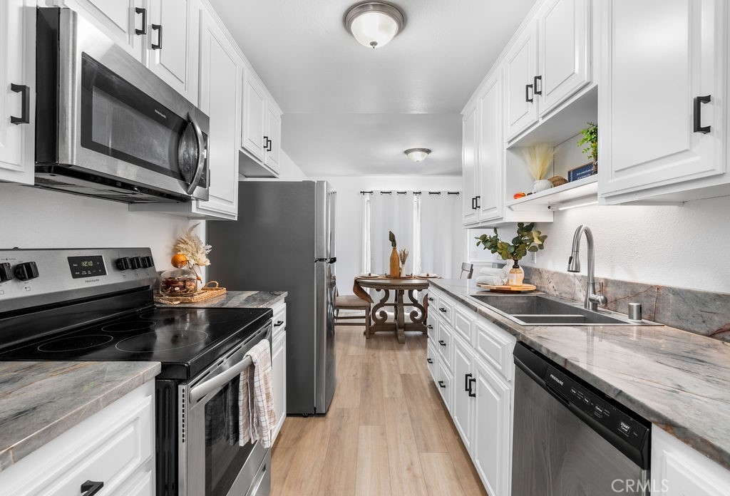 Welcome to Via Princesa at Murrieta Villas! This turn-key, rare single-story corner unit condo, located in the heart of Murrieta is one you don't want to miss! With 3 bedrooms and 2 bathrooms, this immaculate end unit offers a gated front, side and rear yard with lemon tree and only one shared wall. Step inside to find luxurious LVP flooring throughout, a remodeled kitchen featuring beautiful and unique grey quartzite counters and white cabinets, along with elegant wainscoting in the living room and hallway. Freshly painted walls and ceiling fans in every room enhance the comfort and style of this home. The spacious primary bedroom includes a walk-in closet and en suite, while the secondary bedroom showcases a charming shiplap accent wall along with another bedroom. Upgrades continue with a newer water heater (less than 2 years old), dual pane updated windows and sliders complete with blinds, and an all-electric setup- no gas appliances. HOA fees conveniently cover water and trash. One shared garage space with cabinet storage is included, plus an additional parking space. Situated close to award-winning schools, walking distance to the newly reopened Murrieta Hot Springs Resort, gyms, shopping and more! Less than 5 minutes from either the 15 or 215 freeways and only 15 minutes from old town Temecula or wine country! Schedule your showing today!