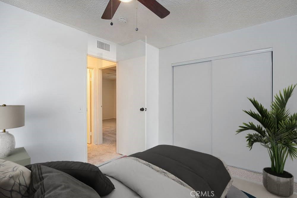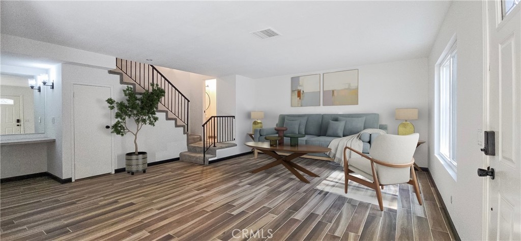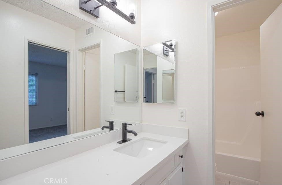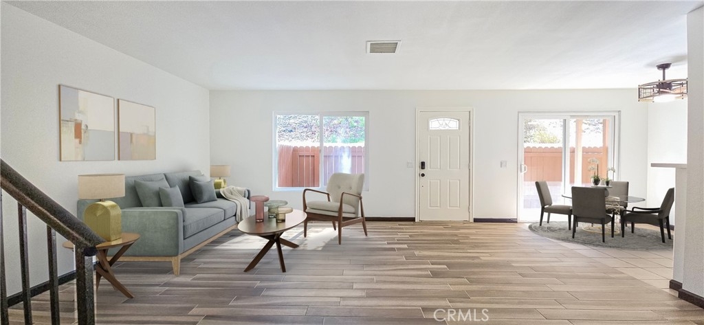 Adorable and Affordable 2 story, 2 bedroom condo in quiet Murrieta neighborhood has been updated and is move-in ready. Private entry, fenced patio off of kitchen with sliding glass door. New plank tile in entry and living room. Owner to leave extra tile for finishing kitchen and dining areas. White cabinetry with new black hardware, quartz countertops with stainless steel farm sink. Newer stainless steel appliances. Washer and Dryer hook-ups off kitchen for convenience. Half-bath on stair case landing for easy access. Extra large storage under stairs. Built in niche in living room can be used for work/craft space. Upstairs are the primary bedroom with private entrance into full bathroom with white cabinetry and quartz countertop, walk-in closet with built-in organizers. Secondary bedroom has nice natural lighting and is spacious. Both bedrooms have ceiling fans/lights. Comes with Nest thermostat. Private lockable storage, shared garage and small community park area. Great opportunity for first time buyers or investors. Close to I-15/I-215, shopping, golfing, medical facilities and wine country close by.