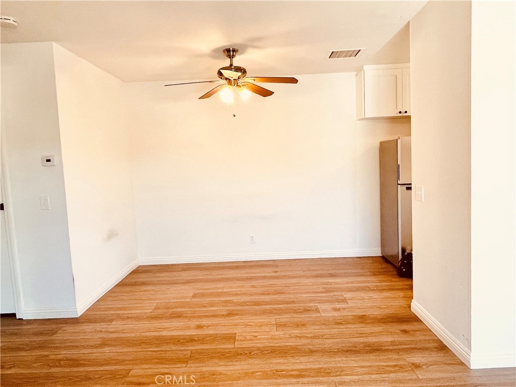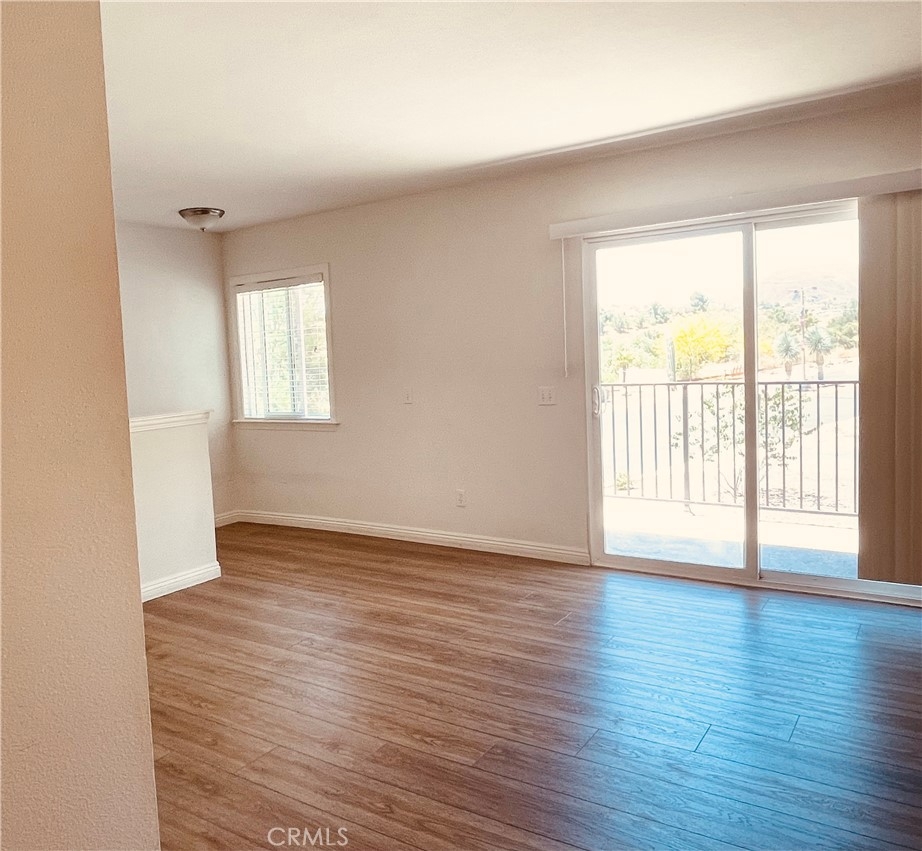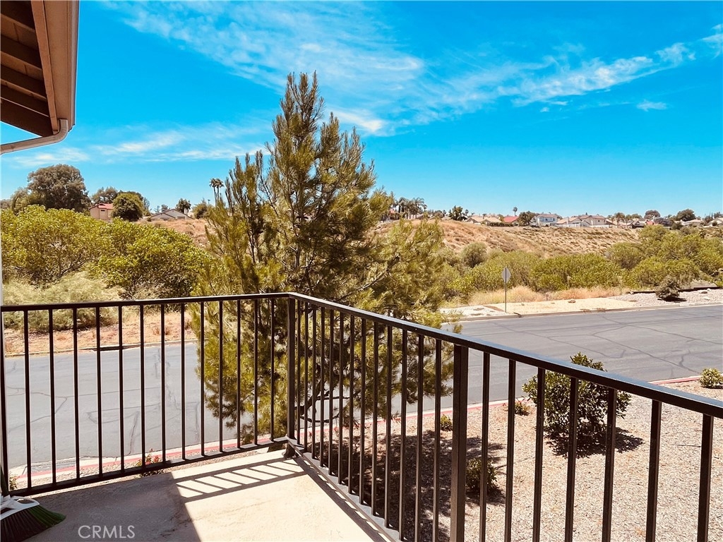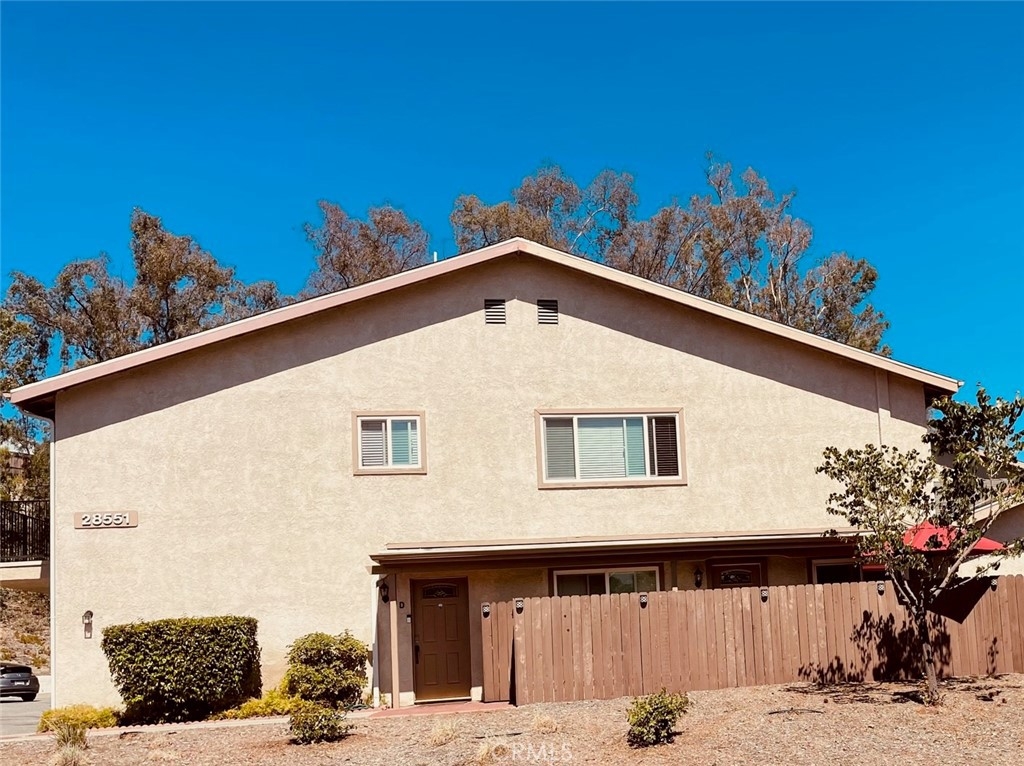 Cozy upper-level condo situated in the Murrieta Villas Community is ideally located near shopping centers, highly rated Murrieta Valley schools, and parks. This desirable end unit is positioned above the garage and boasts 2 bedrooms and 2 bathrooms, 993 square feet of comfortable living space. The open kitchen includes recently upgraded stainless steel appliances, and to add to the convenience, the condo comes with a fridge, as well as a washer and dryer. The interior is spacious and filled with natural light, and a sizable deck off the family room provides a wonderful setting to enjoy the picturesque views of the surrounding hills and trees. The kitchen and bathrooms have been recently updated, giving the home a refreshing and modern feel. An adjacent dining area flows into the open family room, creating a seamless entertainment space. The primary bedroom boasts a private full bathroom with a tub and shower, along with a large closet and ample natural light streaming in through a large window. The secondary bedroom also enjoys abundant natural light and comes with a ceiling fan for warmer summer days. The property offers ample storage space and comes with a single-car garage and an assigned parking space. The front yard maintenance is taken care of by the HOA. This home truly has everything you need to enjoy a comfortable and convenient living experience.