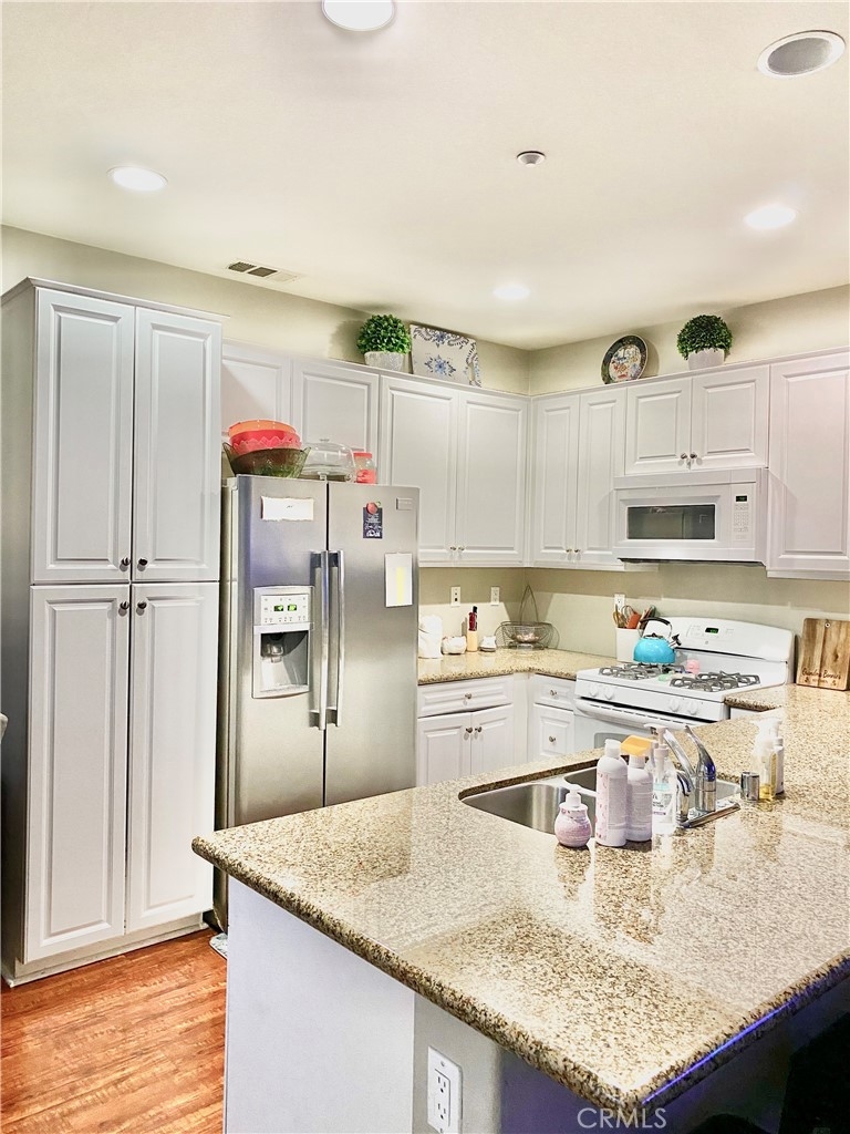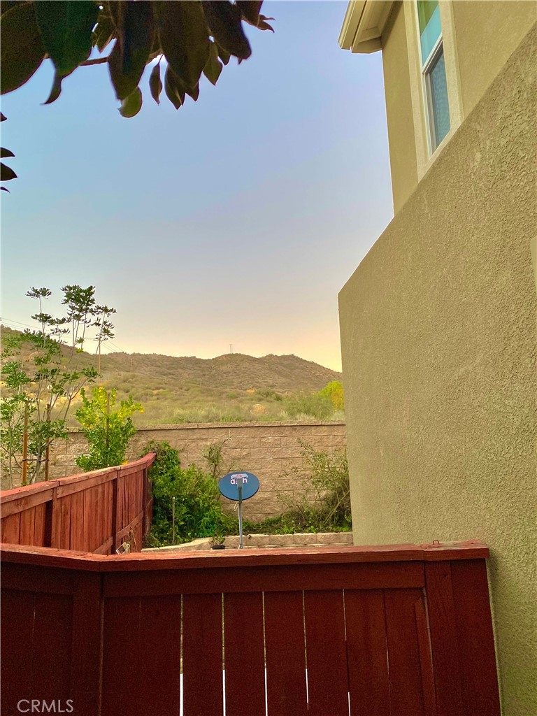 Highly upgraded spacious condominium with a single family home feel. This home is the largest and most popular floorplan in the North Oaks condominium community, and is nestled at the back of the neighborhood with no through traffic and no neighbors behind in a very private, peaceful setting with views of the surrounding hillsides from the large back patio yard. The yard has plenty of grass and patio space for entertaining on warm summer evenings. The entry to the home is tucked away in a beautiful garden like setting, and opens to Livingroom and formal dining with custom wall treatments and designer paint. You'll love the upgraded laminate wood flooring throughout the main floor. Kitchen, family room and dining nook are open and spacious with granite countertops, upgraded white cabinets, and a new microwave and stainless fridge that the owner has graciously offered to transfer to the buyer with the home, along with the washer and dryer. Main level also boasts laundry room and powder room. Moving to the second level, carpet has been upgraded within the past year. A small loft is perfect for desk or craft table, And you'll enjoy romantic hillside and sunset views from the owner's suite, with master tub and shower, separate toilet room, double sink vanities, and large walk in closet. Bedrooms two and three are spacious and share a full bath. Garage floor has new epoxy finish. North Oaks is a sought after community of West Murrieta for it's low tax rate, Community amenities and close proximity to excellent schools, shopping, and freeway access, this truly is a prime location. North Oaks association maintains a beautiful gated pool and spa, playground, and entertaining area with several BBQs for residents' use, and beautiful mature landscaping throughout the community. If you're looking for a upgraded turn-key home, in a tranquil location with privacy and views, but close to town, and all the amenities, you'll feel right at home in this North Oaks Beauty! And just an added bonus, if you're into hiking and getting out into nature, this home backs up to some of the best walking and mountain biking trails in Southern California!