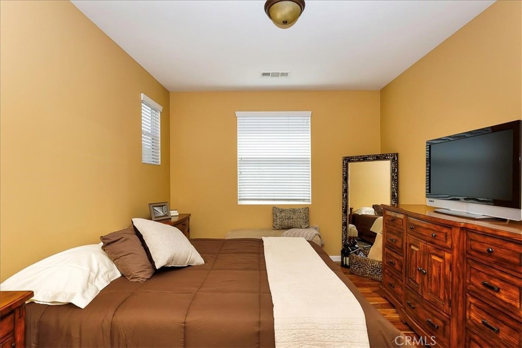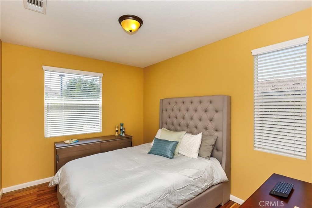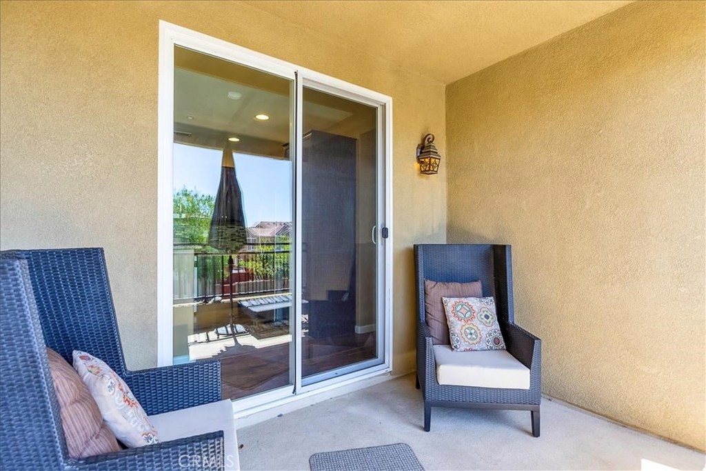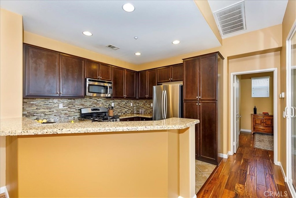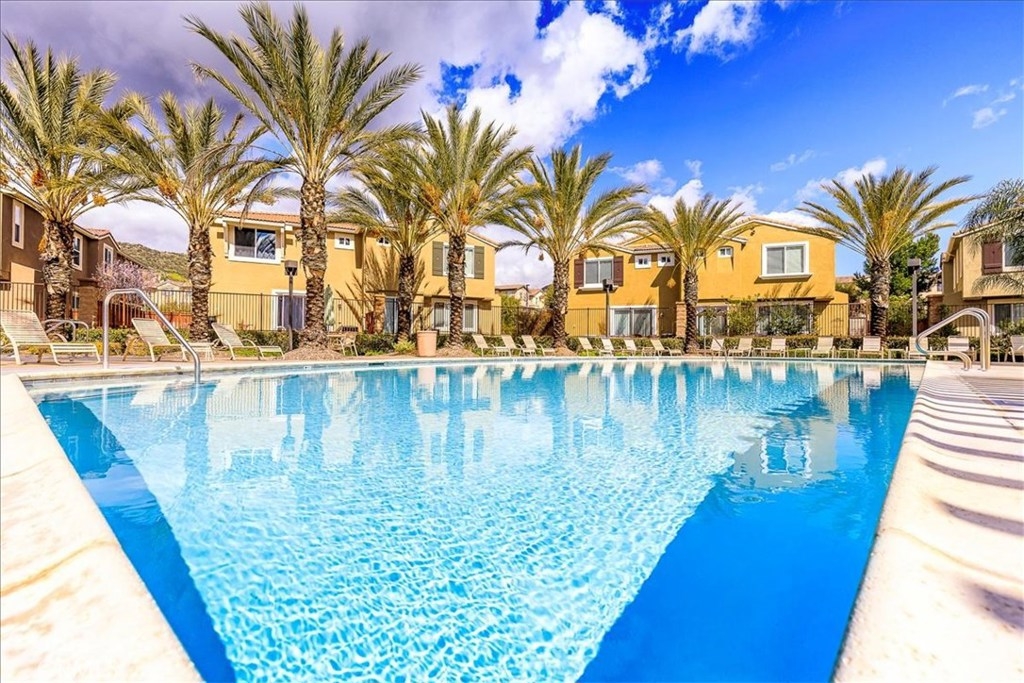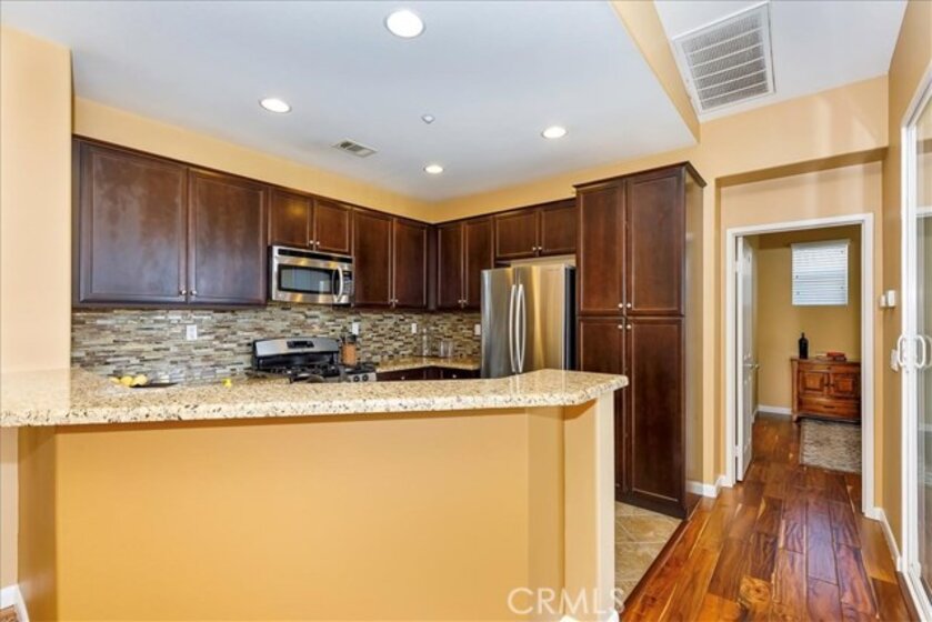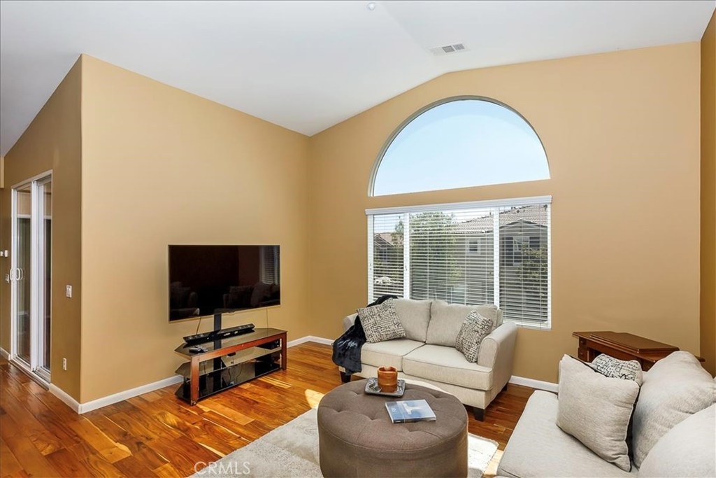 Turnkey. Desirable End Unit. This Beautiful Home offers Engineered Wood Floors Throughout. Open Concept Floor Plan. Newly Installed Smart Package Includes - Nest Door Lock and Thermostat; Control it via your Phone App to Optimize Energy Savings and Access. Vaulted Ceilings with Natural Light. Stainless Steel Appliances, Custom Back Splash and Granite Counter Tops. Master En Suite features a Large Walk In Closet and Dual Sinks in Master Bathroom. Layout is Perfect for Roommates or Home Office. Paneled Doors, Recessed Lighting, Newly Custom Paint, Window Coverings and More! In Unit Laundry. Spacious, Serene Covered Patio. One Car Garage plus Adjacent Reserved Covered Parking Space. HOA offers a Large Pool, Spa, BBQs and Playground. Great location - Shopping, Freeways and Award-Winning Schools. Calling All First-Time Buyers, Investors and if You are Right-Sizing!