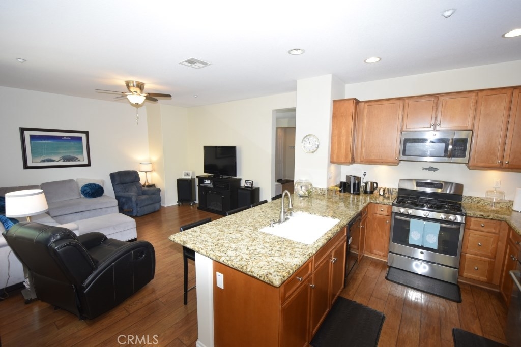 This turnkey home has been very well maintained and tastefully updated. It feels like a single family home due to it's super spacious and appealing floorplan that boasts nearly 1800 square feet! This beautiful home features 3 bedrooms and 2 bathrooms and attached 2-car garage! Located near the 215 Freeway, walking distance to shopping and entertainment, and Murrieta's award winning schools! This end-unit home offers convenience without sacrificing space and style. Enter into the formal living and dining room combo adjacent to the main floor powder room, separate laundry room and interior garage access. The breakfast bar and upgraded kitchen features beautiful countertops, upgraded sink and faucet and is located just off the opposite side of the dining area and is open to the separate family room and provides direct access to the private patio. Upstairs you will find the secondary bedrooms, full bathroom as well as the private master suite with walk-in closet and private bathroom. This home is turnkey and upgraded with new paint throughout, beautiful brand new carpet flooring upstairs and wood laminate with upgraded baseboards on the main floor as well as ceiling fans throughout. The beautiful North Oak Community features a sparkling pool, spa and BBQ! This beautiful home NEEDS NOTHING and is MOVE-IN READY! FHA approved Condo!! All information deemed reliable but not guaranteed, all information should be verified by buyer or buyers agent.