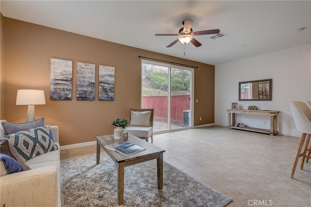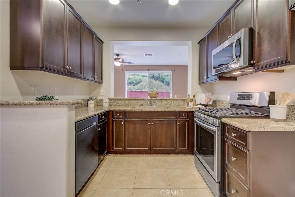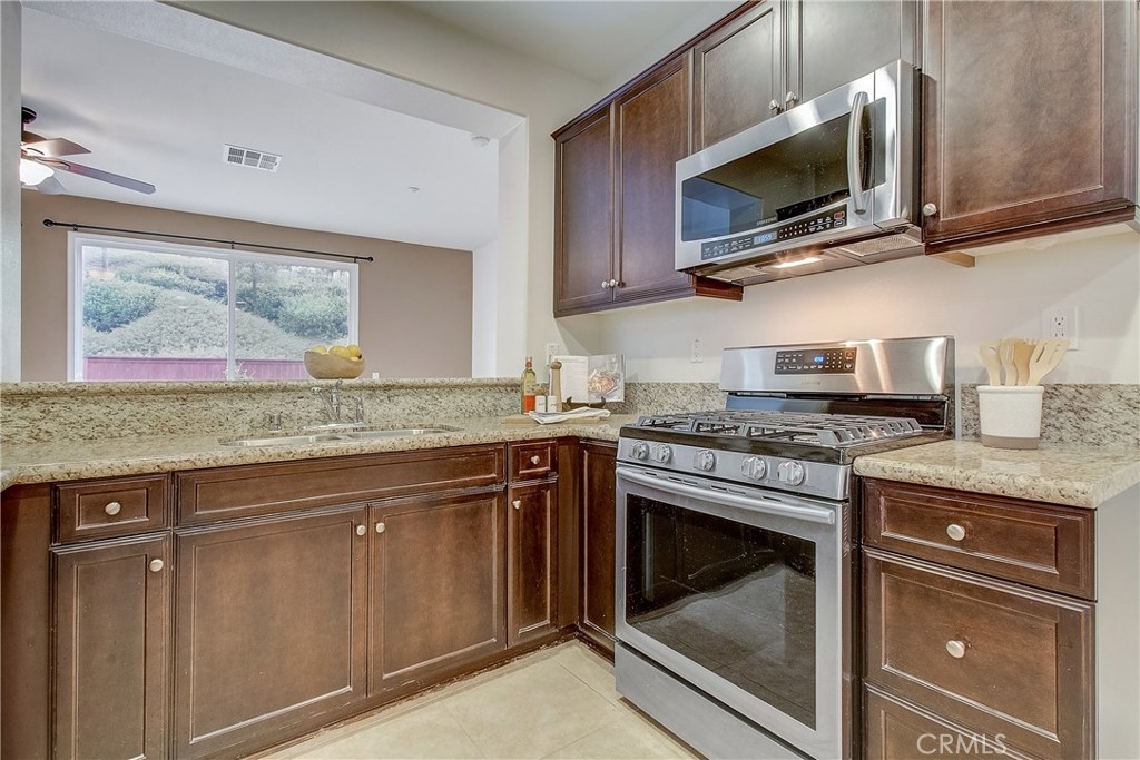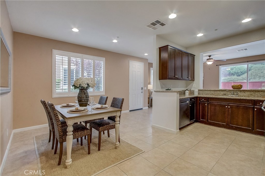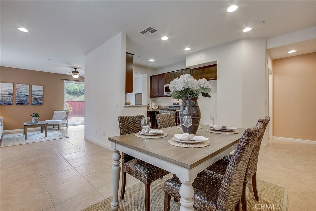Welcome home to the highly sought after North Oaks Community. Features are shutters, tile flooring, lush carpet, ceiling fans and light-catching windows throughout complement the bright and airy floorplan of this gorgeous three-bedroom condominium. The kitchen features beautiful granite counters and backsplash, and upgraded stainless steel sink and stainless appliances, fresh wood cabinets and a separate dining area. Open to the kitchen is an inviting living room with ceiling fan and a slider to the spacious backyard with much privacy. The laundry room is located upstairs, making laundry day a breeze! The master bedroom is generously sized and offers an en-suite bathroom with upgraded tile floors, double sinks, and a roomy walk-in closet. The secondary bedrooms have ample closet space and share the full hall bathroom. Homeowners in this quiet and desirable neighborhood enjoy wonderful amenities including a large pool and spa, BBQs and playground. Nearby shopping restaurants and entertainment venues make this community an ideal choice for fine Murrieta living!
