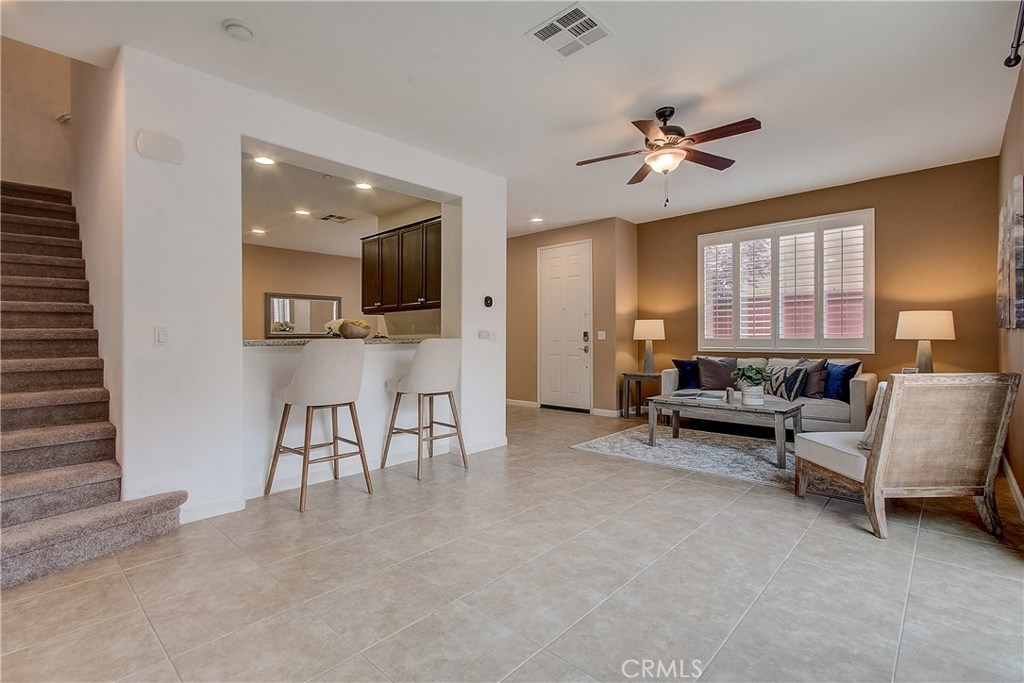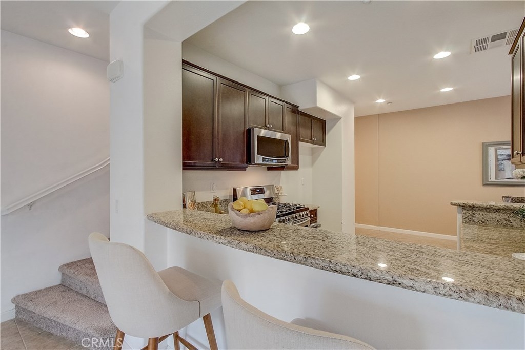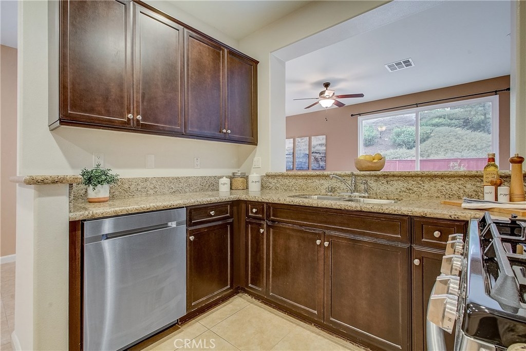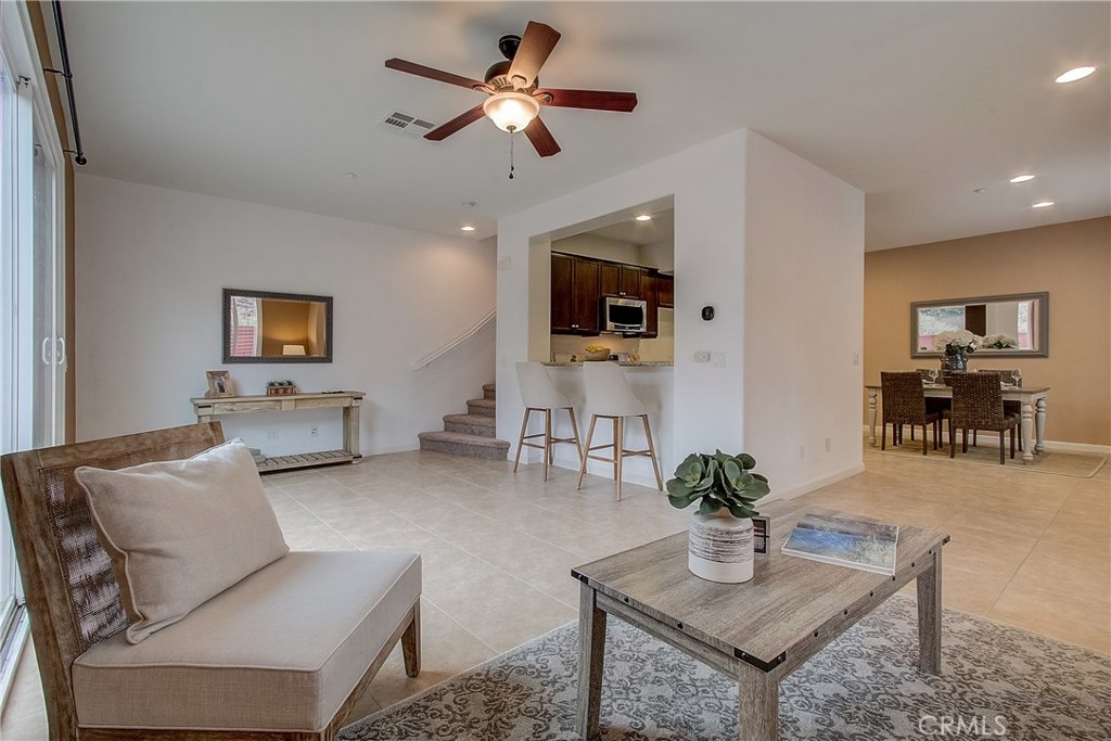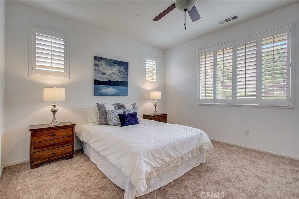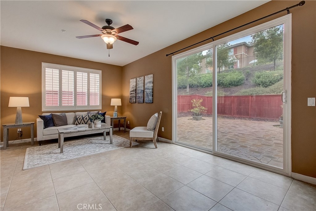 Welcome home to the highly sought after North Oaks Community. Features are shutters, tile flooring, lush carpet, ceiling fans and light-catching windows throughout complement the bright and airy floorplan of this gorgeous three-bedroom condominium. The kitchen features beautiful granite counters and backsplash, and upgraded stainless steel sink and stainless appliances, fresh wood cabinets and a separate dining area. Open to the kitchen is an inviting living room with ceiling fan and a slider to the spacious backyard with much privacy. The laundry room is located upstairs, making laundry day a breeze! The master bedroom is generously sized and offers an en-suite bathroom with upgraded tile floors, double sinks, and a roomy walk-in closet. The secondary bedrooms have ample closet space and share the full hall bathroom. Homeowners in this quiet and desirable neighborhood enjoy wonderful amenities including a large pool and spa, BBQs and playground. Nearby shopping restaurants and entertainment venues make this community an ideal choice for fine Murrieta living!