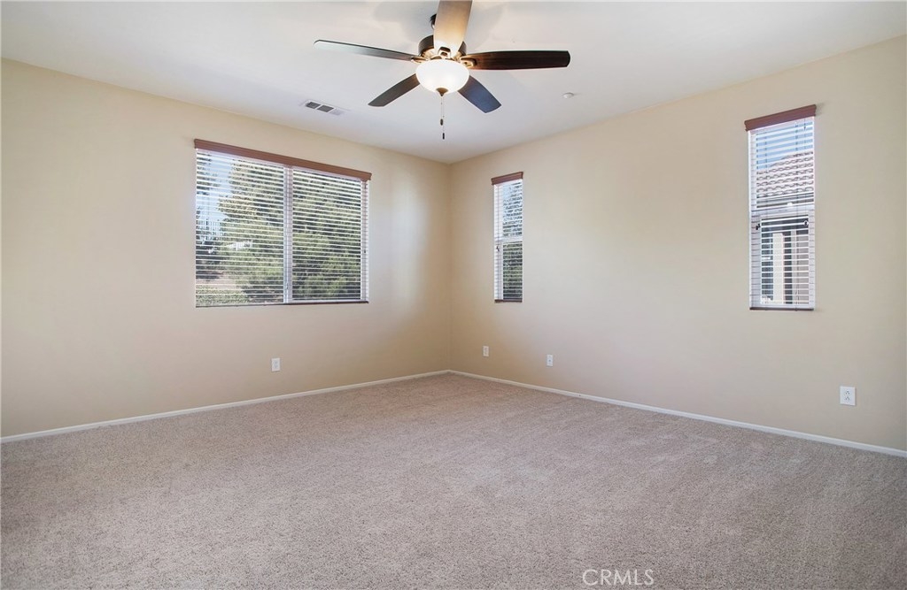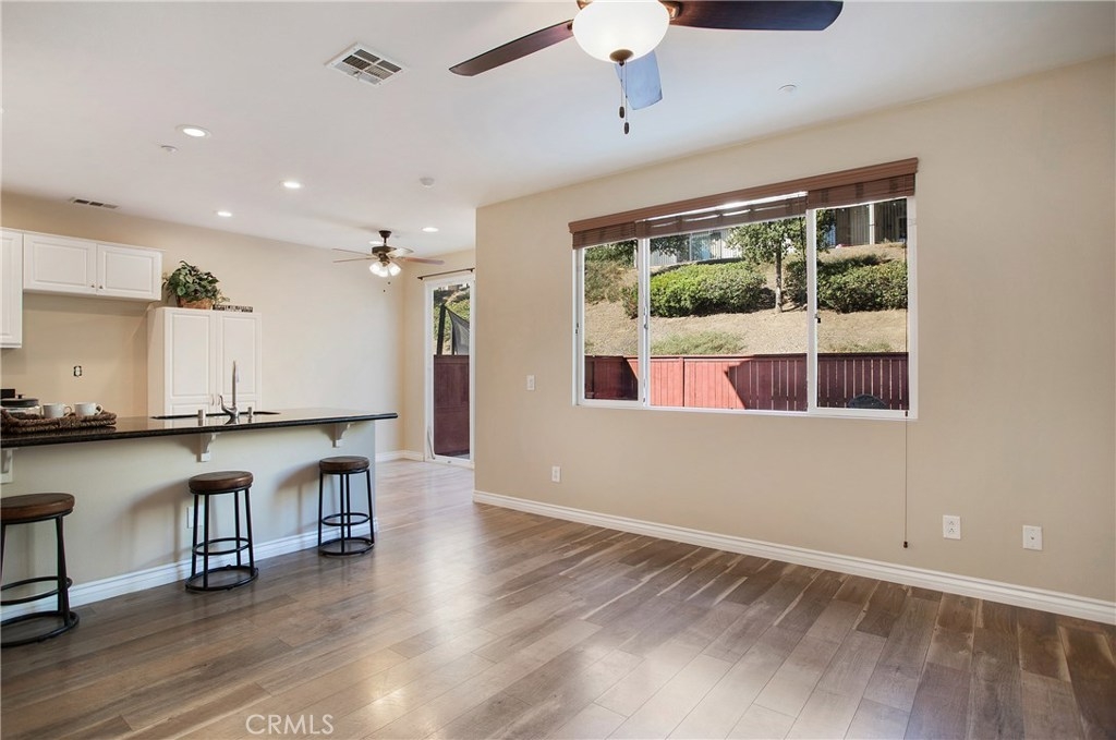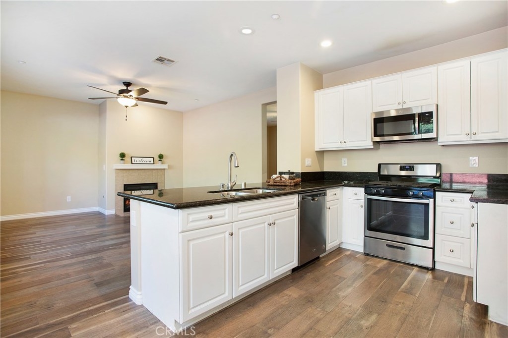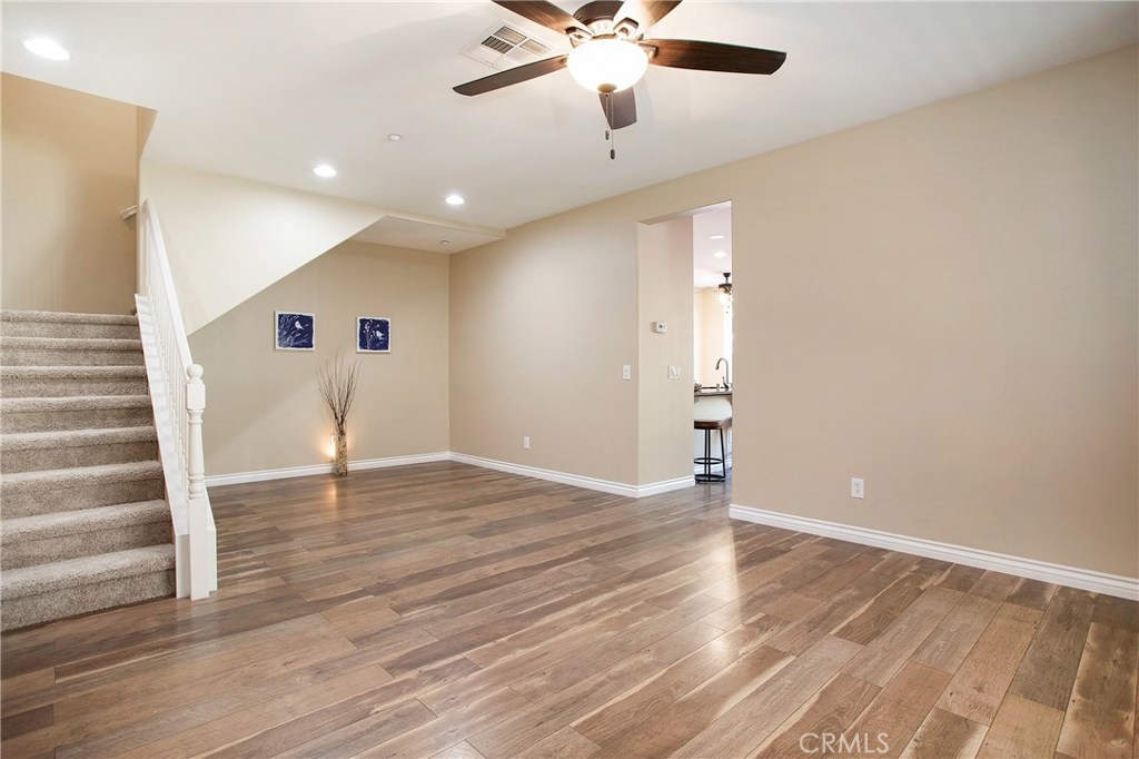 Beautiful, spacious condo featuring open concept family room and kitchen with vaulted ceilings. Kitchen has all new stainless appliances and counter tops. Master suite features a large walk in closet and dual sink bathroom. Newly painted and upgraded with warm wood laminate flooring in living areas and new carpet in all bedrooms and stairway. Other features include ceiling fans, inside laundry, two car attached garage with shelving for easy storage, whole house fan, beautiful paver patio retreat in one of the largest backyards offered in this community. pool, spa, clubhouse, barbecue and playground are included amenities. Move in ready!