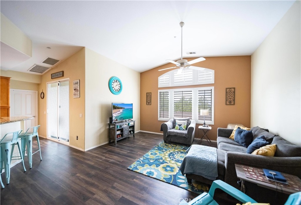 With quick access just seconds off the I-215 and minutes to the I-15. Near all shopping, this is a must see. Enter through your attached garage or via a charming, private walkway—with no neighbors below. Step inside to soaring vaulted ceilings, expansive shuttered windows, and a light-filled open floor plan connecting the living room and entertainer’s kitchen. The kitchen is equipped with granite countertops, tile flooring, and abundant cabinetry. Enjoy stunning mountain views from your private balcony—perfect for sipping morning coffee or unwinding at sunset. Energy efficiency is a highlight with a QuietCool whole-house fan and smart Nest thermostat. The spacious primary suite features a walk-in closet, dual sink vanity, and glass-enclosed walk-in shower. On the opposite side of the home, you’ll find an in-unit laundry area, ample linen storage, and a full guest bath with shower/tub combo. North Oaks offers resort-style amenities, including a pool, spa, BBQ area, and playground. Located in a highly desirable area with award-winning schools, and within walking distance to Starbucks, Target, restaurants, gas stations, banks, medical services, and more. Ask about the HOA, it covers a lot more than you think. Whether you're downsizing, investing, or buying your first home, this centrally located gem checks all the boxes. Schedule your private Viewing with me today!!!!!!!