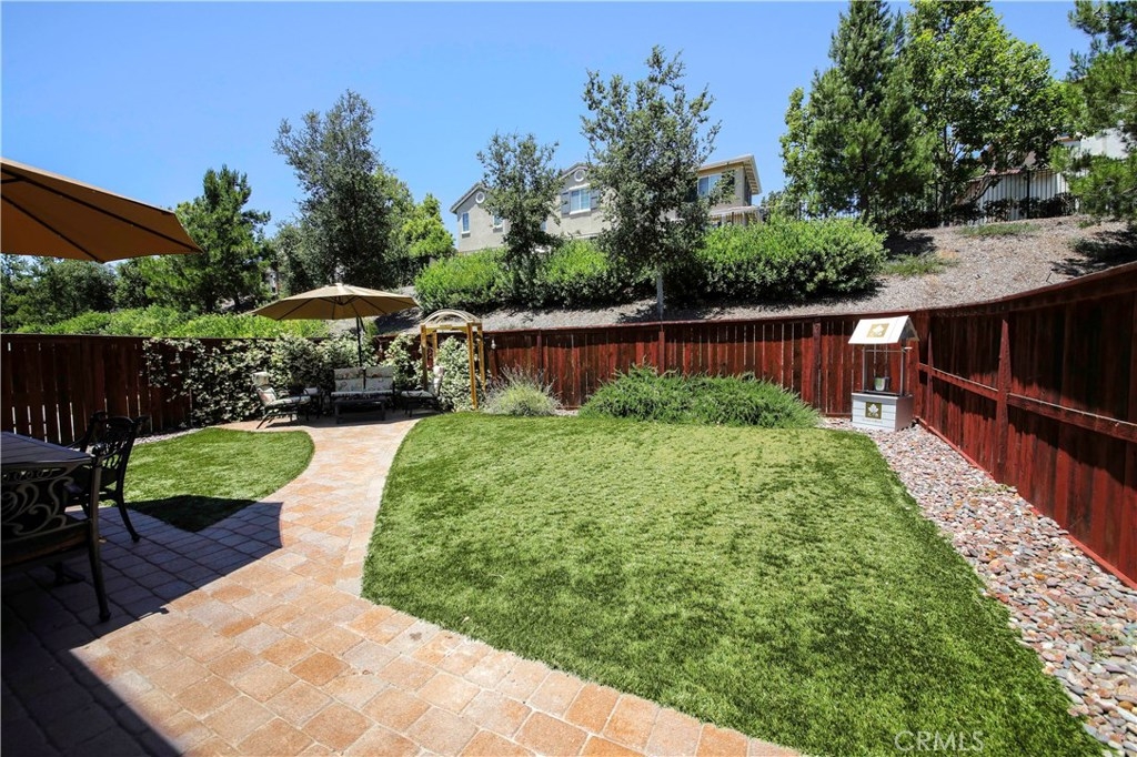 Back on Market!! Buyers could not perform. A perfect lifestyle is offered by this Turn-Key 3 Bedroom 2.5 Bathroom North Oaks Townhome with a r\Rare Large Back Yard!! Large main floor Great Room, Dining Room, and Granite Countertop Kitchen with direct access to the attached 2 Car Garage. Entertain in style both indoors and out. Great Room opens to large backyard with Paver Patio and accent walk way leading to the inviting Fire Pit. Water conserving Synthetic Turf makes for a beautiful carefree environment. Open space and peek-a-boo views to the surrounding hills. Outside the fence line is a landscaped up-slope which provides privacy from rear neighbors. The Master Bedroom with attached bathroom and walk in closet is joined by two secondary bedrooms, hall bath and laundry closet on the second floor. The North Oaks Community offers a Community Pool, Jetted Spa and Barbecue area. Dues include full exterior building maintenance, common area maintenance and insurance of the roof and exterior structural components and access to the community amenities. Resident insures contents only so Home Insurance is less costly.