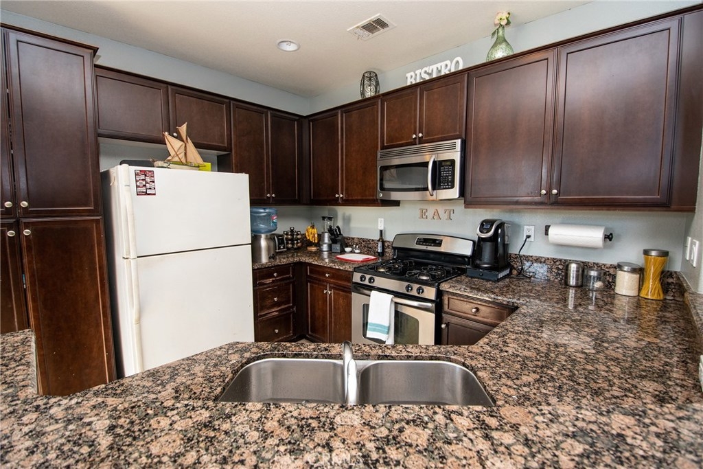 North Oaks Executive Style 2 Bedroom Condo w/ Attached Garage. Single Story Living on the 2nd Level. This Innovative Open Floor Plan is Designed for Entertaining w/ Ease and Includes a Balcony Connected to a Large Kitchen w/ Dark Wood Cabinets, Open Bar Area, Stainless Steel Appliances & Sink, and Granite Counter Tops. The Kitchen is Open to the Family & Dining Rooms. Spacious Master Retreat Includes Custom Paint & Interiors, Dual Vanity Sinks and Ceramic Tile Flooring in the Master Bath, Large Walk-in Shower, and a Walk-in Closet. Large 2nd Bedroom w/ Custom Paint. 2nd Bathroom includes a Shower/Tub Combo. Convenient Interior Laundry Area w/ Shelving. This Unit Includes Direct Access to a Single Garage at the Entry Level and a 2nd Covered Parking Spot Outside the Front Door. The North Oaks Community Features a Tot Lot, Resort Style Pool, Spa, and BBQ Area. Walking Distance to Retail Center (Super Target, Starbucks, etc ...). Close to Award Winning Murrieta Schools. Easy Access to the 215 & 15 Freeways. A must see!