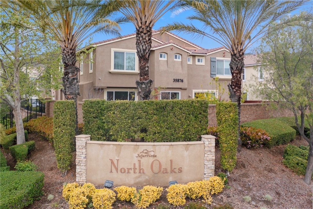 YOUR HOME SWEET HOME AWAITS YOU AT THE HIGHLY SOUGHTAFTER NORTH OAKS COMMUNITY IN MURRIETA. DESIRABLE FLOORPLAN HAS BEEN FRESHLY PAINTED AND OFFERS BRAND NEW CARPET. SPACIOUS BEDROOMS SITS ON OPPOSING ENDS OF THE UNIT FOR MAXIMUM PRIVACY. HOME IS APPOINTED WITH HIGH CEILINGS, RECESSED LIGHTING AND LARGE WINDOWS ALOWING AN ABUNDANCE OF NATURAL SUNLIGHT IN. KITCHEN OFFERS GORGEOUS UPGRADED GRANITE COUNTERS WITH BREAKFAST BAR ALONG WITH LOADS OF CUPBOARD SPACE ~GREAT FOR STORAGE. SPACIOUS BALCONY SITS JUST OFF THE FAMILY ROOM PROVIDING A GREAT PLACE TO UNWIND AFTER A HARD DAY! SINGLE CAR ATTACHED GARAGE HAS DIRECT ACCESS AT ENTRANCE TO THE UNIT. INDOOR LAUNDRY PROVIDES THE ULTIMATE IN CONVENIENCE. THIS CONDO IS LOCATED 2 MINUTES FROM THE 215 FWY, MAKING IT EXTREMELY COMMUTER-FRIENDLY AS WELL AS UBER CLOSE TO SHOPPING INCLUDING THE BRAND-NEW COSTCO. VISTA MURRIETA HIGH SCHOOL IS ALSO CONVENIENTLY CLOSE. LOMA LINDA AND KAISER HOSPITAL ARE LOCATED WITHIN 5-10 MILES FROM UNIT.