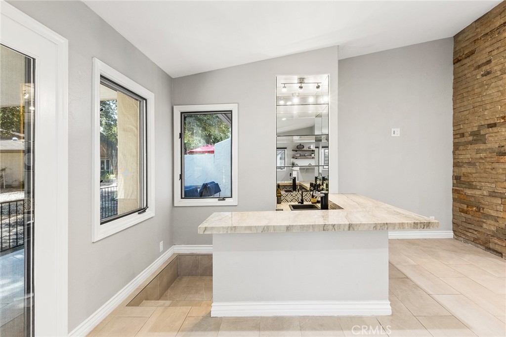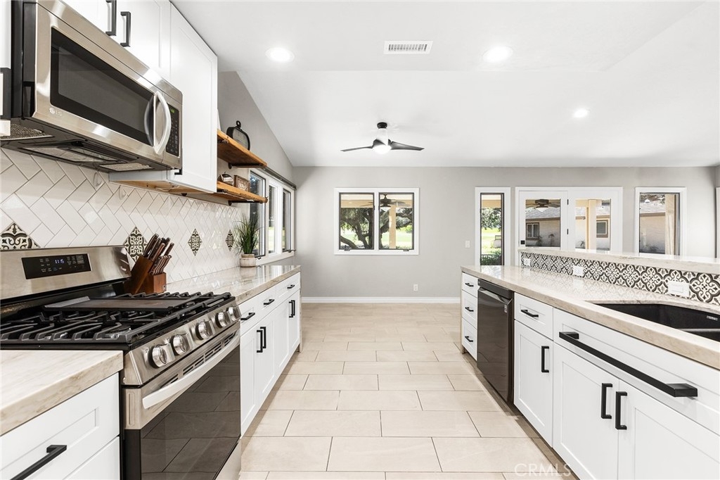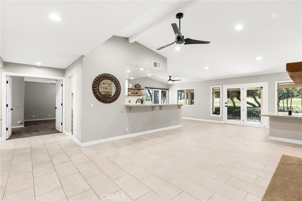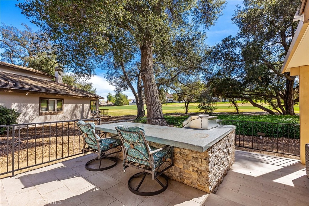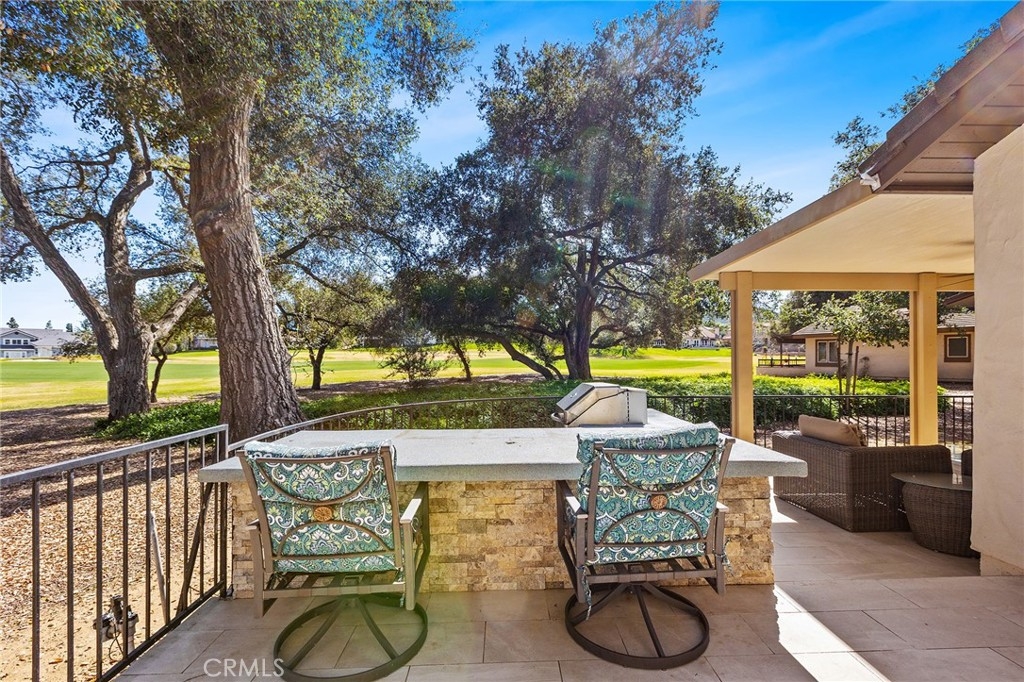 Gorgeous 2-bedroom, 2.5-bath single-story home perfectly positioned on the 17th fairway of the prestigious Jack Nicklaus golf course. This stunning residence has been beautifully remodeled throughout, offering the perfect blend of luxury, comfort, and seamless indoor-outdoor living. The kitchen has been completely transformed, with the wall between the kitchen and family room removed to create an open-concept great room ideal for entertaining. Highlights include exquisite quartz countertops with waterfall edging, updated cabinetry accented with gorgeous black hardware, high-end LG appliances, and modern LED lighting. The stylish wet bar has also been upgraded with beautiful quartz countertops, a sink, and a built-in beer keg — perfect for hosting gatherings. The open family room features a custom stone fireplace wall and breathtaking golf course views, creating a warm yet sophisticated focal point. Enjoy both an eat-at bar and a dedicated dining area for effortless entertaining. Both spacious primary suites offer private en-suite bathrooms, custom closet organizers, and custom doors leading directly to the backyard — providing seamless access to the tranquil fairway views. The main primary bathroom has been fully renovated with a large double vanity, custom mirrors, designer lighting, upgraded fixtures, and a stunning walk-in shower with gorgeous marble walls. The secondary en-suite bath also renovated and showcases a custom vanity, LED lighting, herringbone tile flooring, a tiled bath/shower combo, and elegant fixtures. The hall powder room is equally impressive with a custom vanity, updated lighting, gorgeous fixtures, and a striking decorative stone and tile accent wall. Custom Levolor window coverings throughout the home add both sophistication and functionality. Additional highlights include direct access to a 2-car garage with epoxy flooring and an abundant amount of cabinetry and overhead storage. Step outside to your private backyard oasis featuring an Alumawood covered patio, dedicated seating areas off each bedroom’s private access, a custom BBQ island complete with refrigerator, and breathtaking views of ancient oak trees and the lush fairway beyond. This is golf course living at its finest — remodeled, refined, and truly move-in ready.