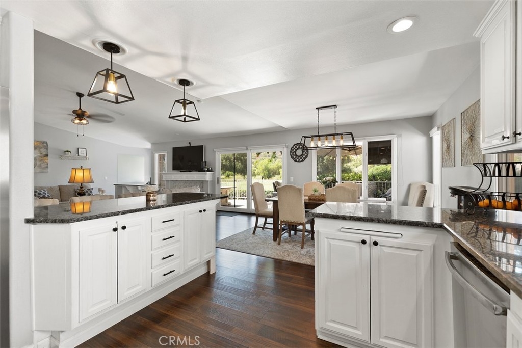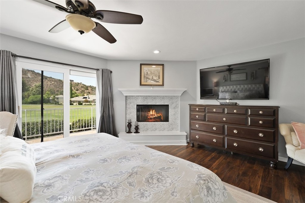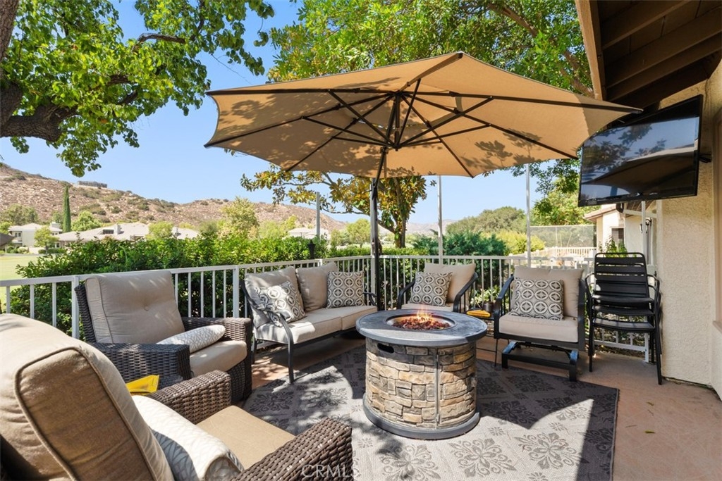 Single story, DETACHED unit in the Oaktree Villa's. Located on the par 4, second hole at Bear Creek Golf Club. Lovely, light and bright unit with a great open floor plan. Huge family room with fireplace and wet bar, attached to the remodeled kitchen with granite counters and newer backsplash. Kitchen includes breakfast bar and dining area all open to the family room. Sliding door and picture windows accent the beautiful views of the golf course and hills behind. Master bedroom with fireplace and slider to patio. Master bath with 2 closets, and newer double sink vanity. Two additional bedrooms and secondary bathroom with large walk in shower. Large full length patio with wrought iron fencing, great for cocktail hour or afternoon BBQ's. 2 car+ attached garage with direct access to home. Single story, detached and on the course makes this a rare find.... come see for yourself !