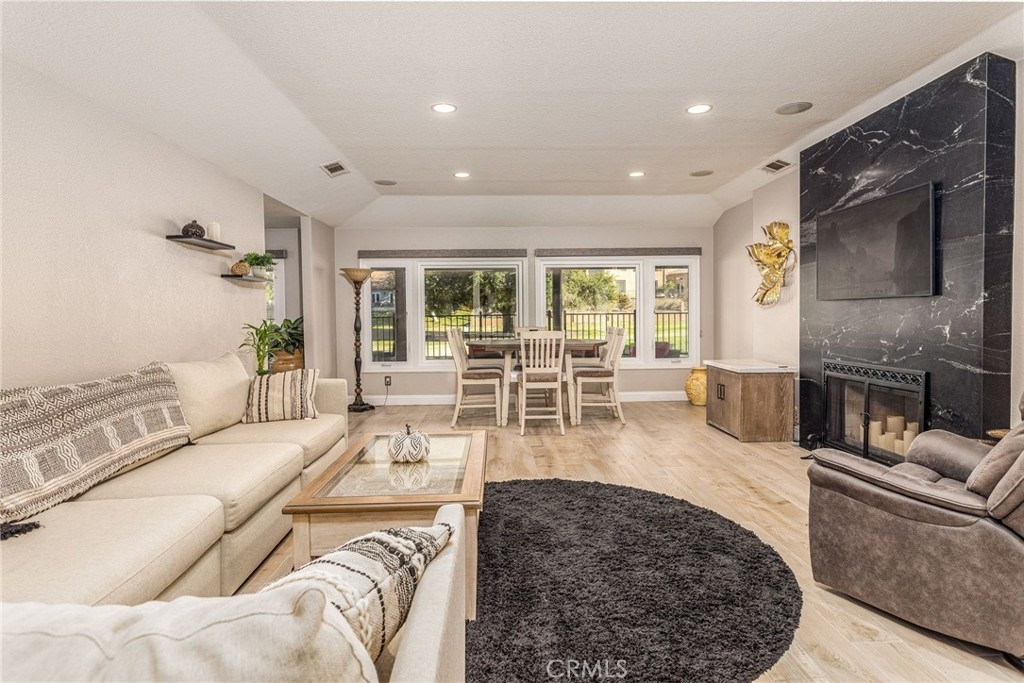 Luxury Live Auction! Bidding to start from $525,000! Welcome home to this gorgeous single-story Oak Tree Villa in the exclusive gated community of Bear Creek. Enjoy this magnificent open floor plan featuring 2 bedrooms, 2 bathrooms, and 1,720 square feet of well-designed living space. A recently installed large living room window allows views of the historic Jack Nicklaus signature golf course, oak trees, custom homes, and the 17th-hole fairway. Fresh interior and exterior paint. All new flooring with wood-look Italian porcelain tile throughout and carpet in bedrooms. The remodeled kitchen features granite countertops and backsplash. All new stainless steel appliances include a double oven gas range with an air fryer plus a pot-filler over the stovetop, dishwasher, and microwave oven. New kitchen cabinetry with soft-close drawers and cabinets. The kitchen also includes all high-quality fixtures. Relax out back in your new Alumawood-covered patio with a ceiling fan, concrete flooring, wrought iron fencing, natural stone walls, solar LED lights, natural gas hookup for barbecue, garden hose bib, and plenty of electrical outlets. The large 2-car garage has epoxy flooring, a roll-up garage door with an automatic opener, custom built-in cabinets, and upgraded pull-down stairs from the attic for easy storage access. More highlights include a tankless water heater, a whole house filter, a reverse osmosis system, recessed lighting, lots of natural light with custom dual pane windows, and three skylights. Bear Creek Amenities include private tennis, pickleball, bocce ball, and basketball courts. A fitness center with three separate gyms, a cardio room, a weight room, and a stretch core room. Two association swimming pools, spas, meeting rooms, private streets, and more. Conveniently located near award-winning schools, restaurants, shopping, 15 Freeway access & the Santa Rosa Plateau with great hiking and biking trails. HOA includes all yard services, exterior landscape water, trash & roof maintenance. Ask to see the home inspection report, termite clearance, and all disclosures.