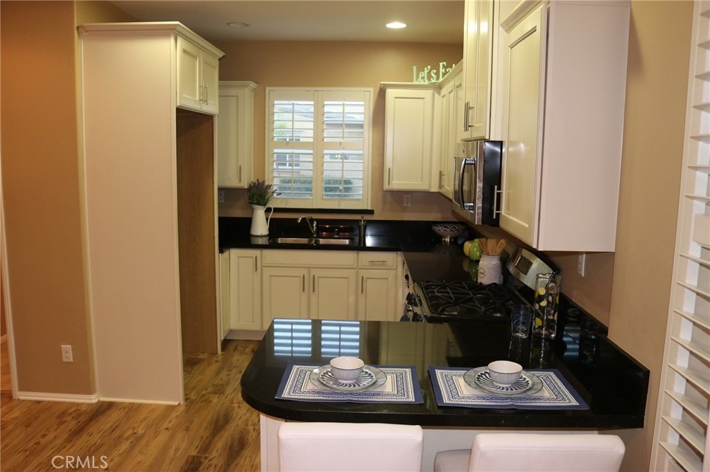 Gorgeous location, park like setting in front that seperates you from the neighbors. Well appointed, 3 bedroom 2.5 baths, clean and desirable unit with 2 car garage. This home is truly turnkey - It has been meticulously maintained & shows like a model home. Windows are trimmed with plantation shutters throughout. Upgraded white cabinets with granite countertops in the kitchen and master bath. Wood laminate floors and tile. NO shared walls. Sliding door leads to a private patio. Enjoy a community pool, spa and tot lot. Indoor laundry. The garage has a bonus closet that is perfect for storage. Move in ready - 2 story unit with Jack and Jill bedrooms upstairs. This community is within the outstanding Temecula school District. Come and view this lovely home. Agent is related to seller.