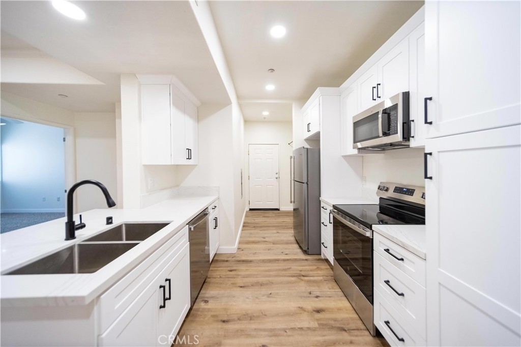 TURN-KEY! ABSOLUTELY GORGEOUS! Rarely available and beautifully upgraded 3-bedroom, 2-bath, corner-unit condo in the desirable gated community of The Reserves at Madison Park in Murrieta. This spacious downstairs Condo has approx. 1,235 sq. ft. of living space and features new luxury vinyl plank flooring throughout with new tile in the bathrooms and new carpet in the bedrooms, fresh interior paint, paneled doors, and new recessed LED lighting throughout and new water heater. The inviting living room offers a cozy fireplace, ceiling fan, and opens to a private patio. The middle bedroom also has a back door to the spacious additional private yard/patio area perfect for your patio set and BBQ! The fully renovated open-concept kitchen showcases shaker-style white cabinets with pantry and slow close drawers and doors, , quartz countertops, breakfast bar, new stainless steel appliances (refrigerator included), and updated LED lighting. Both bathrooms have been upgraded with new cabinetry and quartz counters. All 3 bedrooms are generously sized with walk-in closets. Additional features include an attached single-car garage, assigned covered carport, and indoor laundry room area. HOA amenities include gated entry, pool, spa, fitness center, racquetball court, playground, and clubhouse. Conveniently located near shopping, dining, Old Town Murrieta, and freeway access. This condo is Turn-key and move-in ready! A MUST SEE!