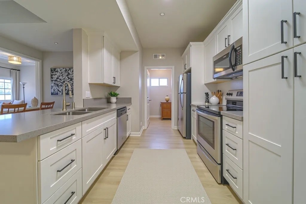 Welcome to this beautifully renovated condo in the highly sought-after Reserves at Madison Park community. This stunning 2-bedroom, 2-bathroom home has been thoughtfully upgraded from top to bottom, offering modern style, comfort, and convenience. Step inside to discover new luxury vinyl plank flooring throughout, complemented by fresh paint and an abundance of natural light. The open-concept kitchen shines with real wood cabinetry, elegant quartz countertops, and updated plumbing and light fixtures, creating the perfect blend of functionality and sophistication. With 1,159 sf of living space the spacious living and dining areas open to a private balcony overlooking a tranquil greenbelt—ideal for enjoying your morning coffee or evening unwind. Both bedrooms are generously sized, with walk-in closets and beautifully updated bathrooms that offer a spa-like retreat. Enjoy the peace and privacy of being on the second floor with no neighbors above, plus the convenience of an attached garage and an additional covered carport just steps away. Reserves at Madison Park offers gated entry, a community pool, spa, fitness center, racquetball and playground. Located near shopping, dining, and easy freeway access. Don’t miss your chance to own this turn-key home in one of Murrieta’s most desirable communities!