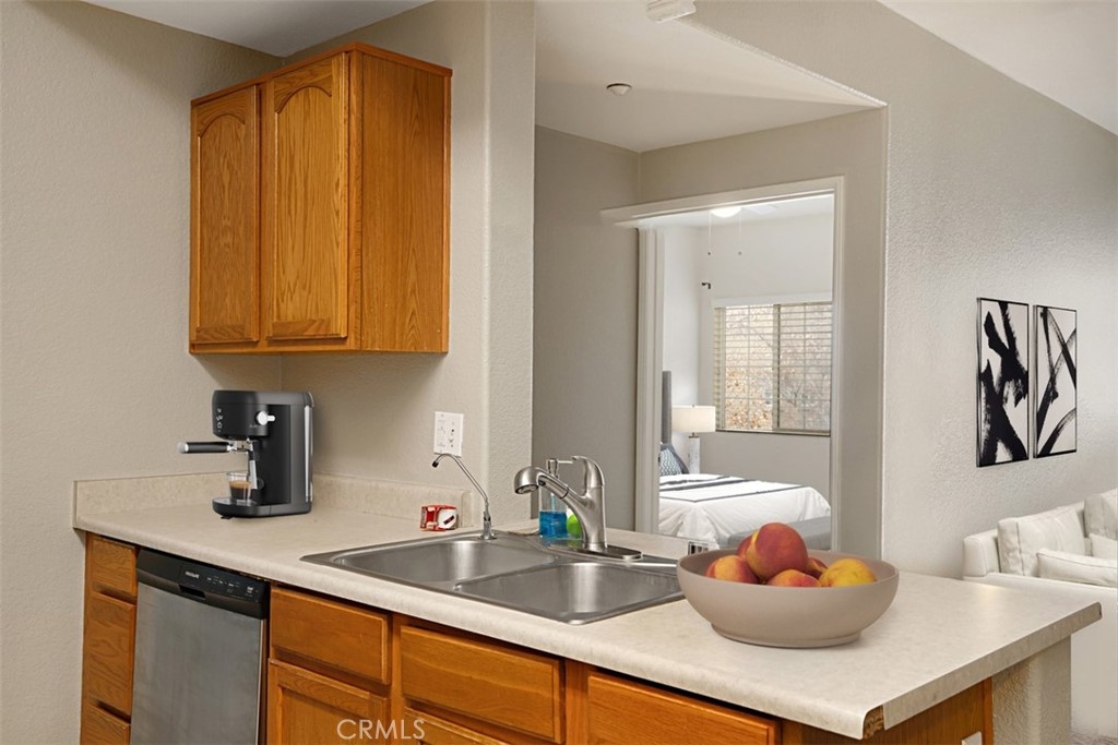 Priced to sell and move in ready! This condo is located in the highly desirable Reserves at Madison Park. HOA includes a gym, Pool, Spa, sauna, Barbecue, Playground, Clubhouse, indoor racquetball court, dog park, the list goes on! Home is easy to show and very clean with Stainless Steel appliances, including refrigerator and washer and dryer. It includes a 1 car garage plus a carport. The floorplan is very open with 2 bedrooms and 2 baths. Located within walking distance to shopping and restaurants and in the Murrieta Valley School District.