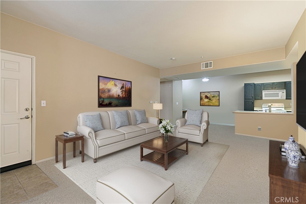 Welcome to this beautiful lower level condo with direct access to one-car garage! Located in The Reserves at Madison Park, close to the front gate and clubhouse, this condo features approx. 1159 sqft. of living space and has an enclosed patio off of the family room. Enter the home to an open floorplan with fireplace in family room and built-in TV area. Kitchen opens up to dining area and includes refrigerator, range, microwave, and dishwasher. Dining area features a built-in office desk. The master bedroom has an en-suite bathroom, ceiling fan, and walk-in closet. The secondary bedroom is similar in size as the master bedroom and also has a walk-in closet. Guest bathroom has plenty of storage space for your linens. Interior laundry room includes washer/dryer and is located off of the attached 1-car garage. Garage has epoxy flooring and built-in shelves. Separate storage room is located inside next to front door. This unit also includes an assigned 1-car carport. The community offers a variety of amenities with close access to pool/spa, playground, gym, and racquetball court! Located within the Murrieta school district. Close access to the 15 and 215 freeways, shopping, and restaurants! Come see this gem before it is gone! (Some photos of Family Room and Guest Bedroom have been virtually staged.)